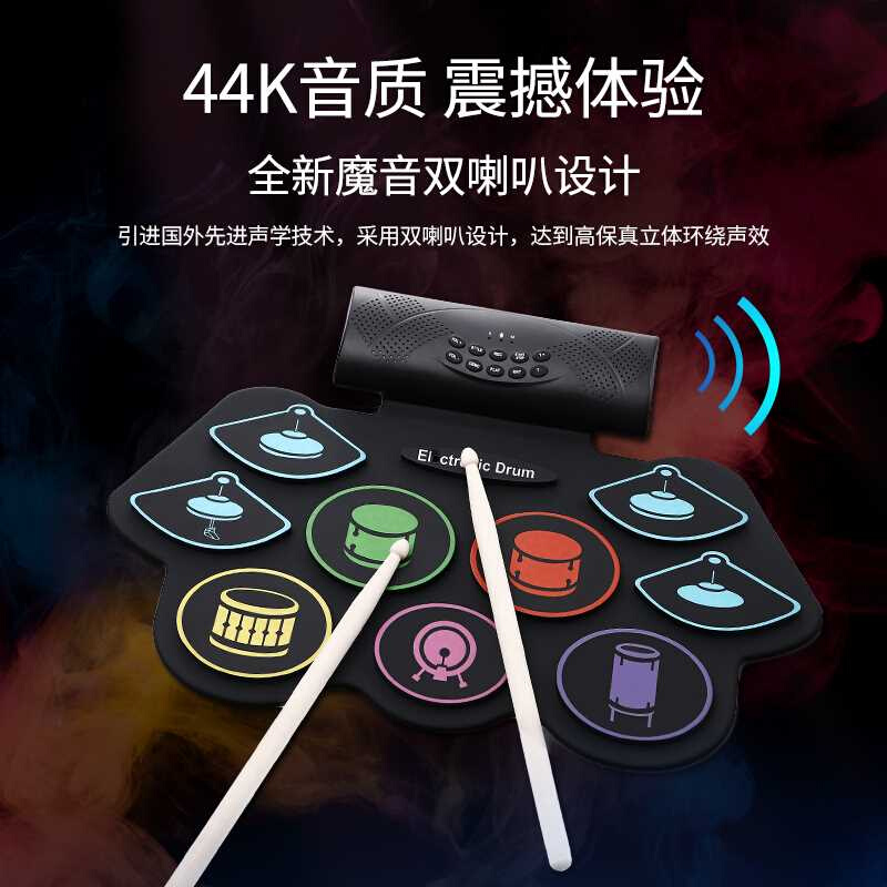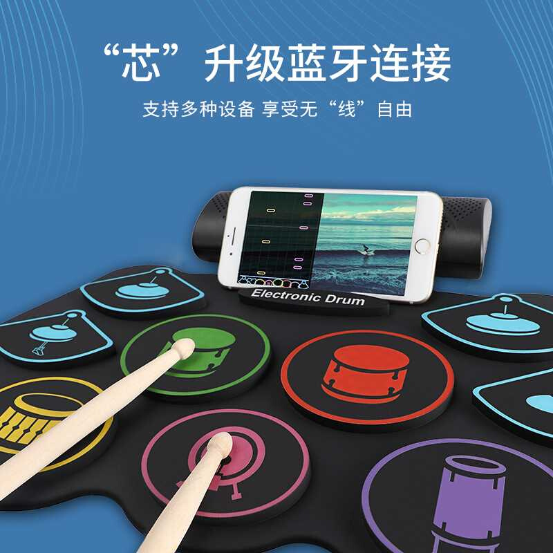 便携式手卷电子鼓架子鼓折叠成年儿童初学者家用练手神器打击鼓