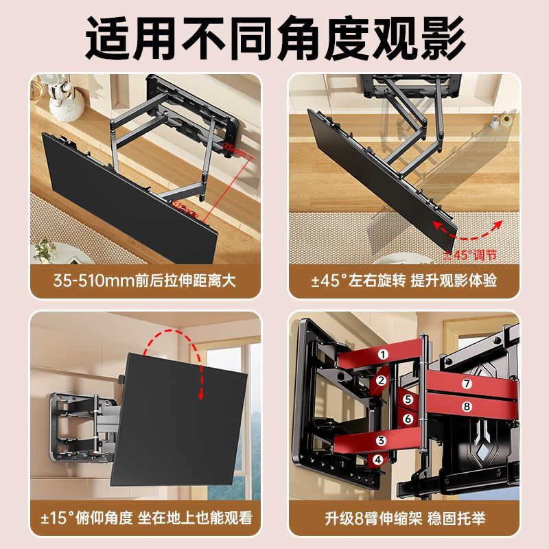 通用电视机挂架伸缩旋转折叠支架壁挂适用海信索尼小米65/75/85寸