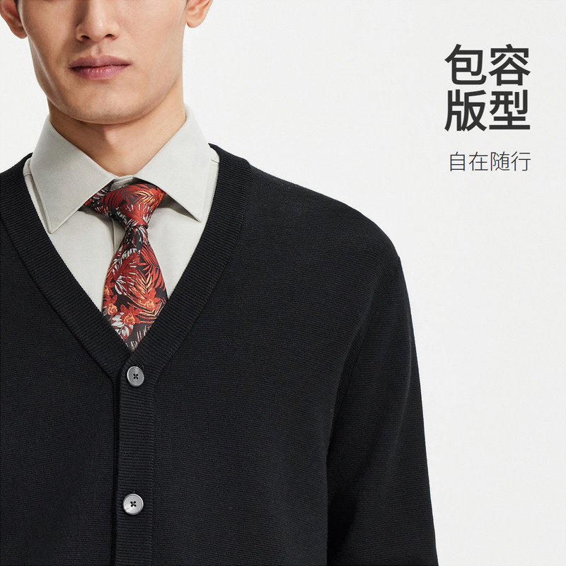 【羊毛开衫】金利来秋冬新款男士毛衣针织外套宽松v领羊毛衫