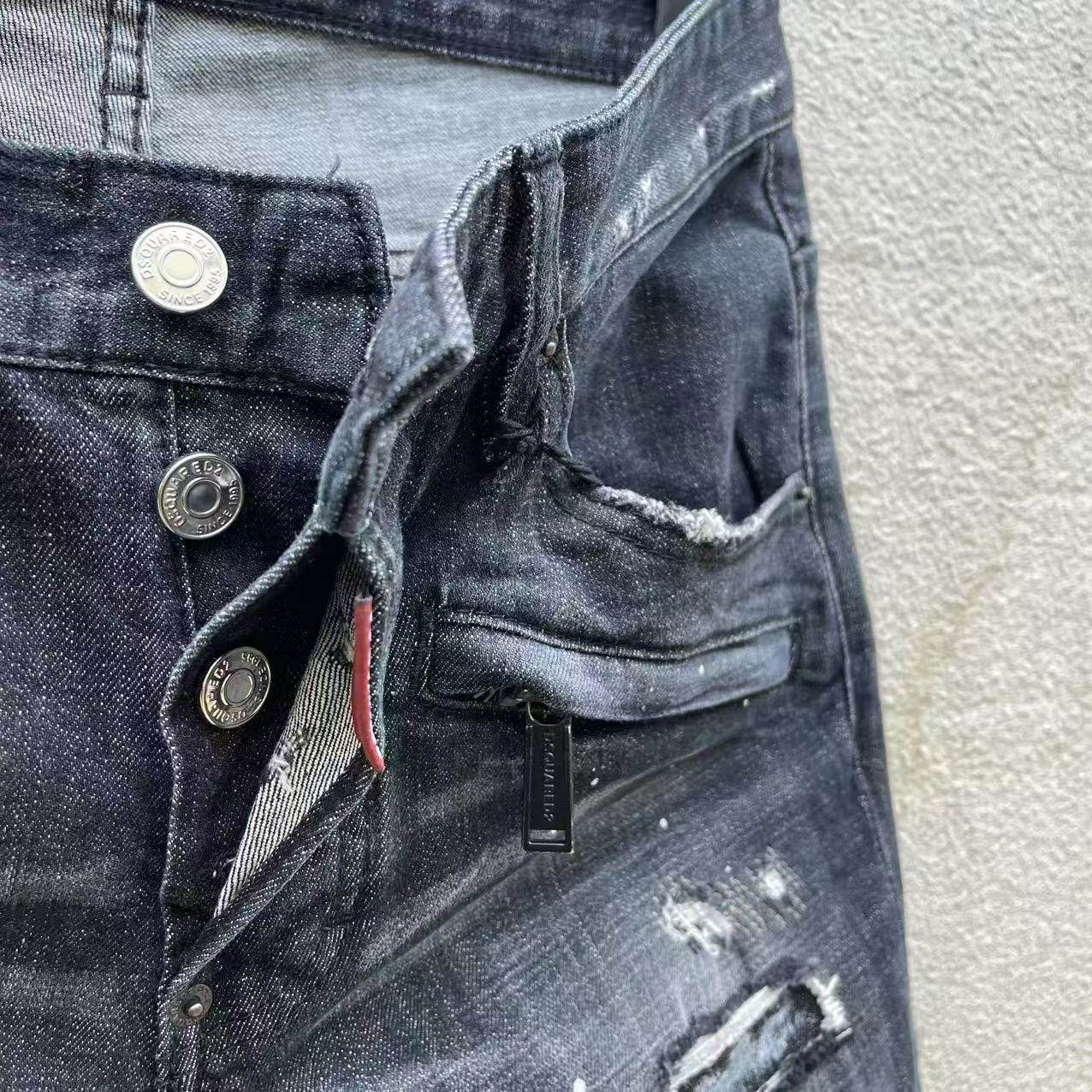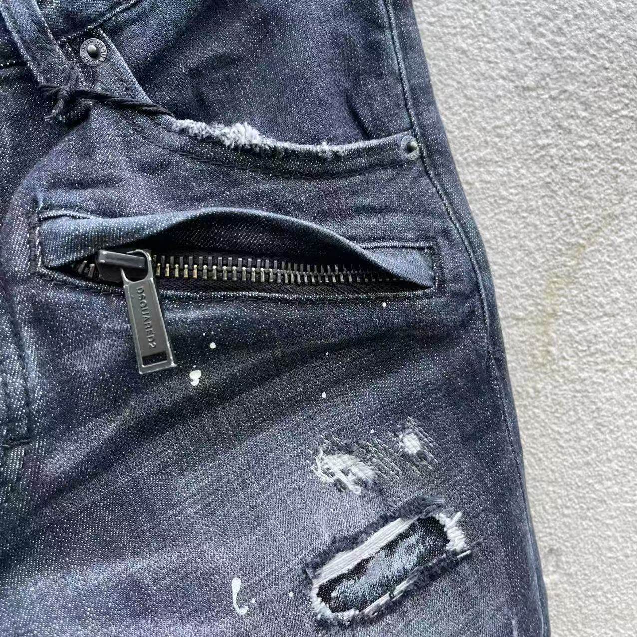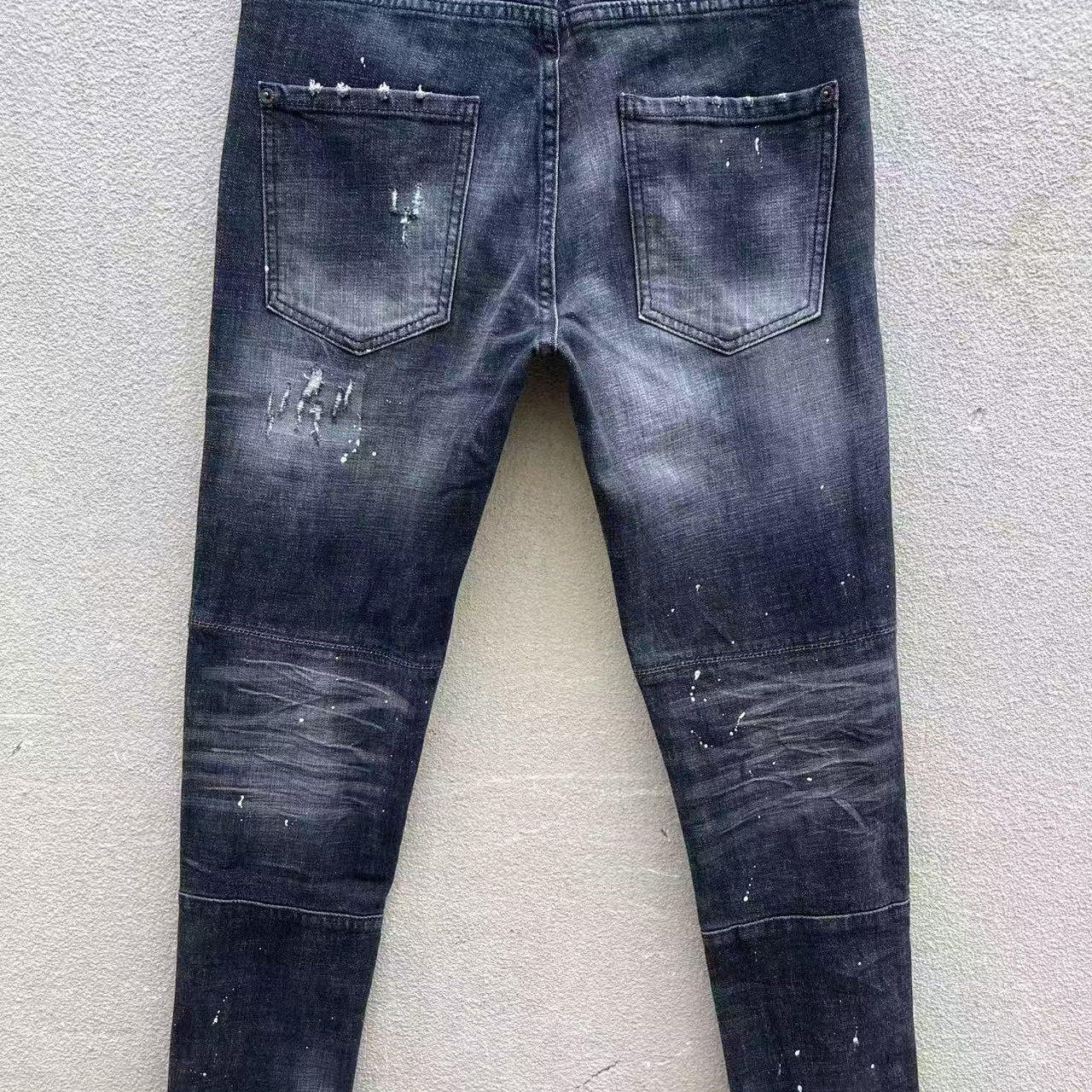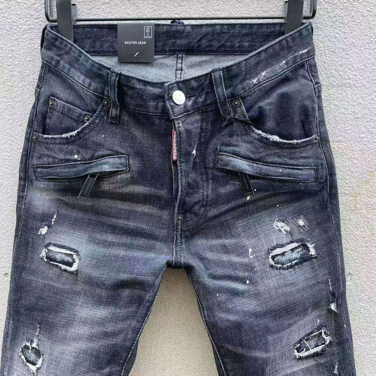 2025春夏新款D2潮男水洗磨破洞补丁做旧修身小脚灰黑色牛仔裤男