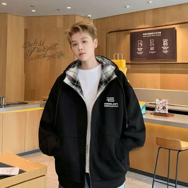 促销深秋款男大童双面休闲夹克青少年学生宽松连帽加厚风衣外套潮