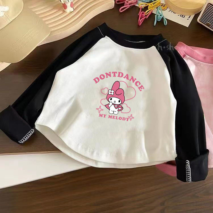 女童秋装2025新款T恤童装女宝宝长袖印花打底衫儿童百搭撞色上衣