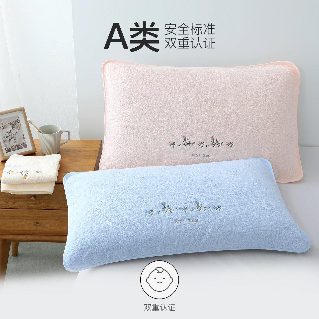 2条金号枕巾一对纯棉素色提花圆角工艺情侣款螺旋吸水工艺新疆棉