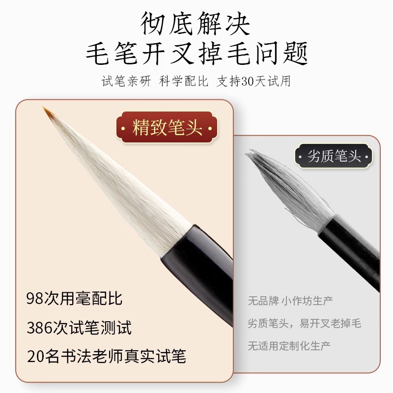 六品堂毛笔兼毫套装初学者书法专用儿童纯狼毫羊毫小学生成人小楷软笔毛笔专业级国画练字文房四宝字帖白云笔