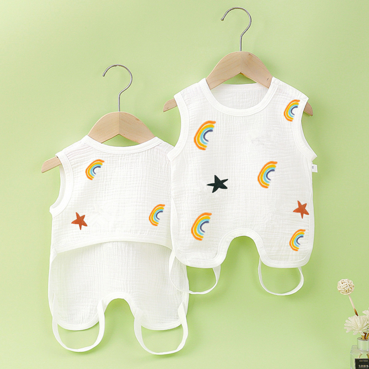 初生婴儿宝宝肚兜护肚子睡觉防着凉a类纯棉100%全棉连腿半背衣服