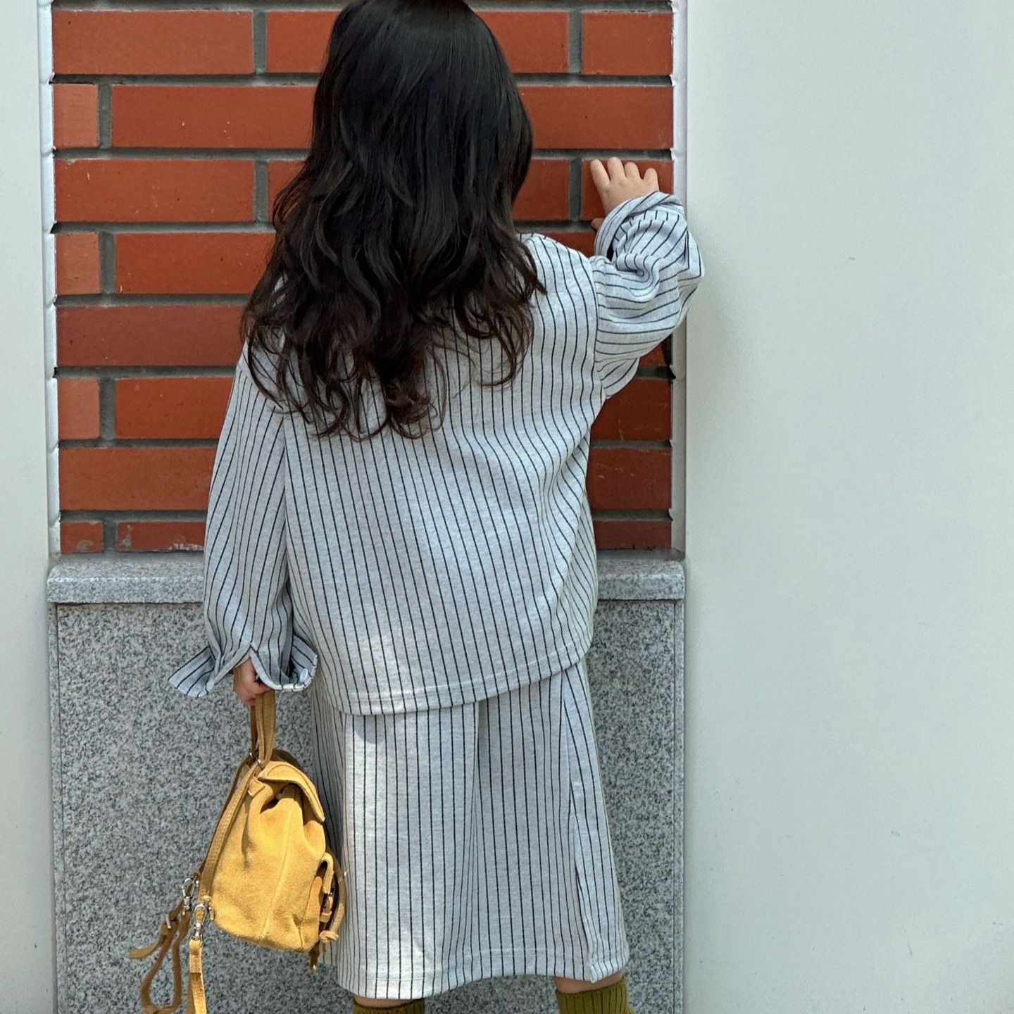 2025秋季新款女童学院风百褶裙套装幼儿园休闲条纹衬衫裙子两件套