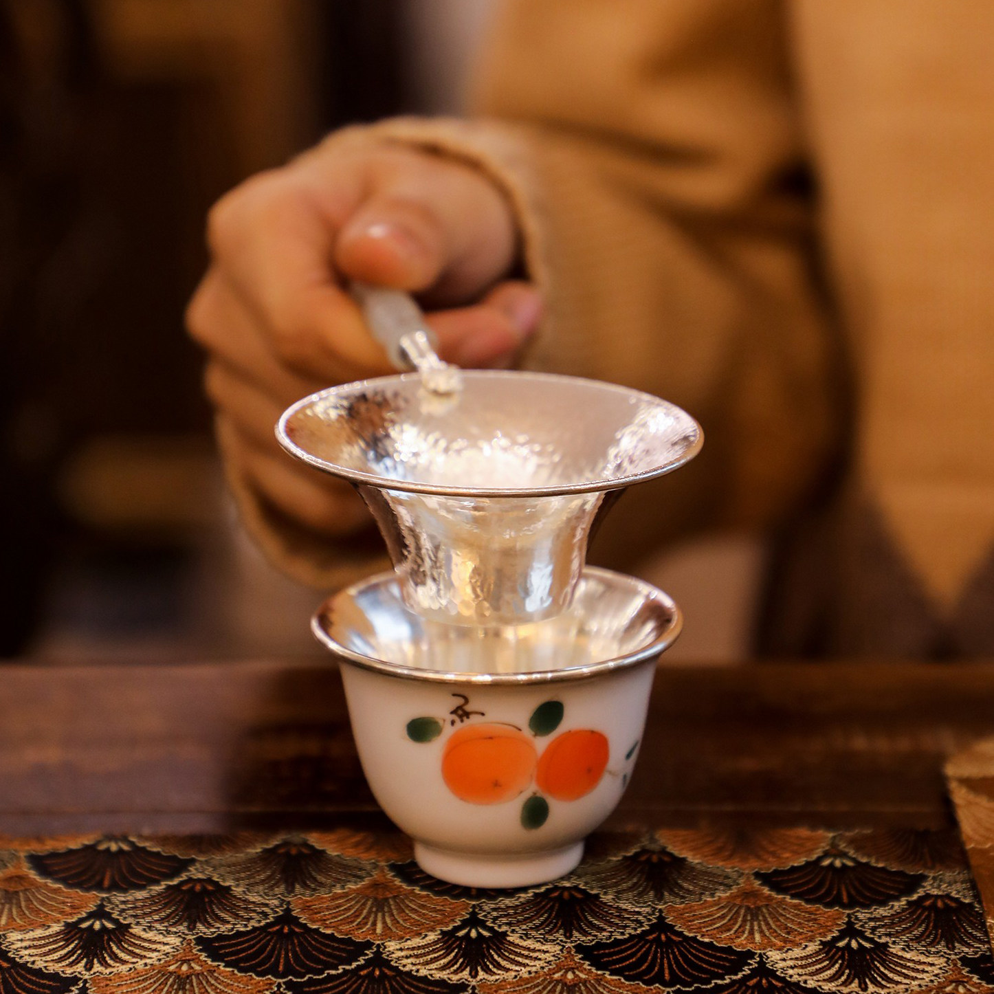 纯银时代玉把纯银茶滤足银999