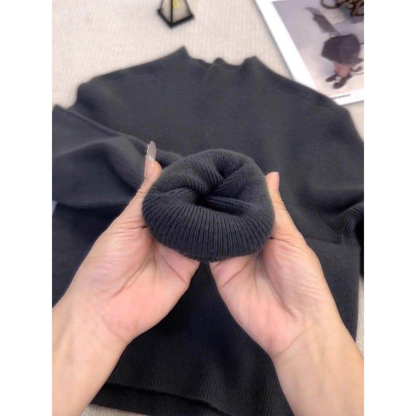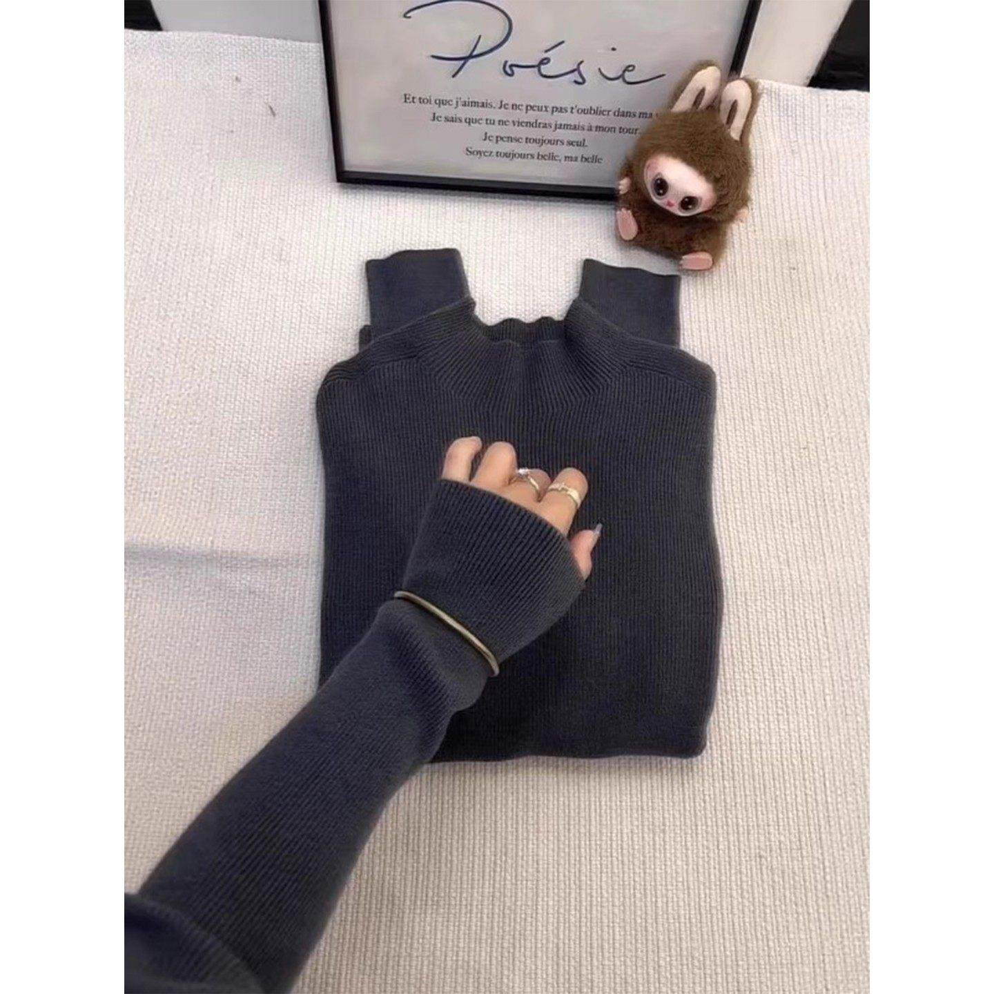 配羽绒服灰色半高领毛衣内搭女2025秋冬季胖MM针织打底衫长袖上衣