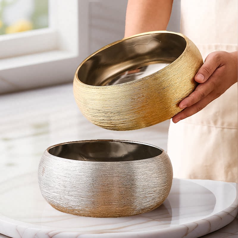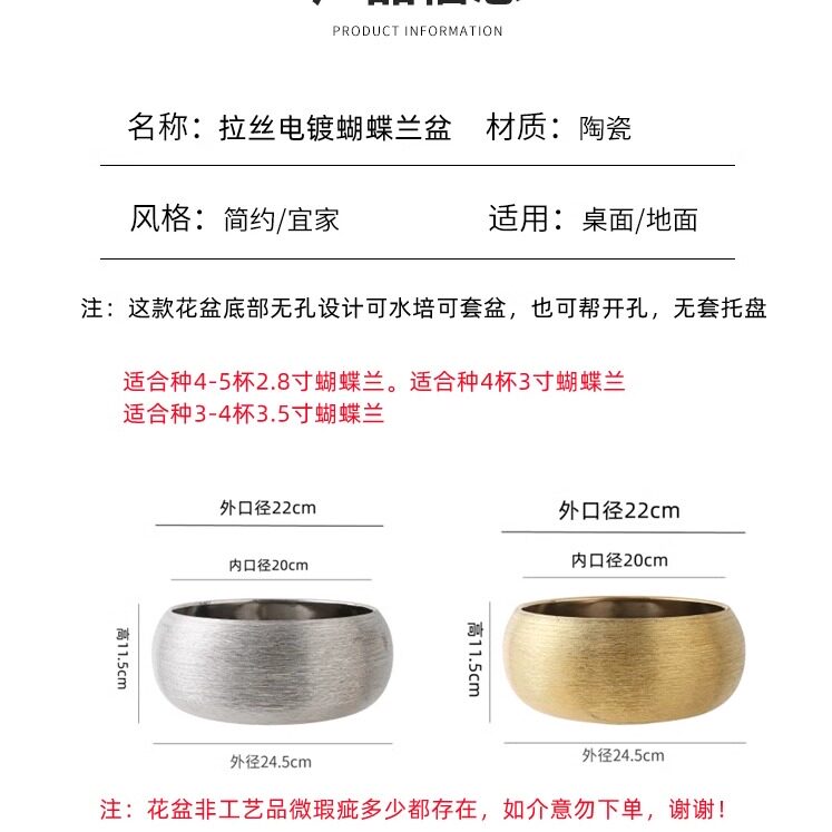 陶瓷花盆金色拉丝磨砂3杯蝴蝶兰专用无孔可水培容器微景观多肉盆