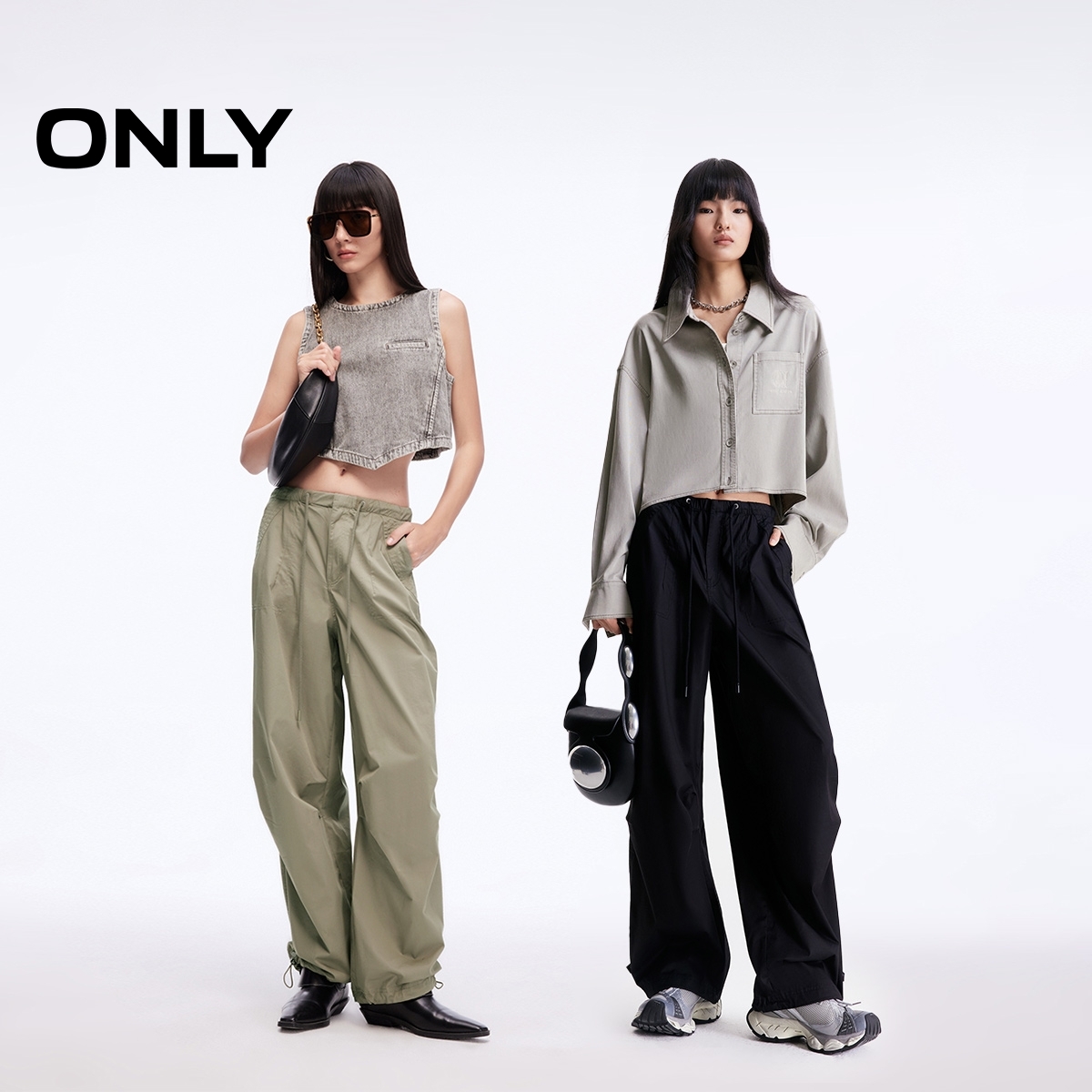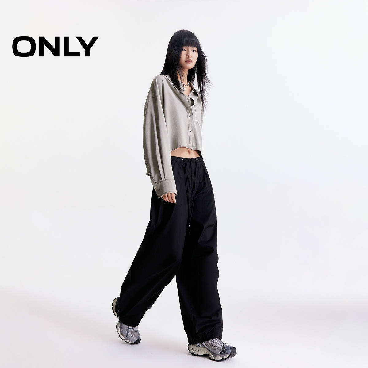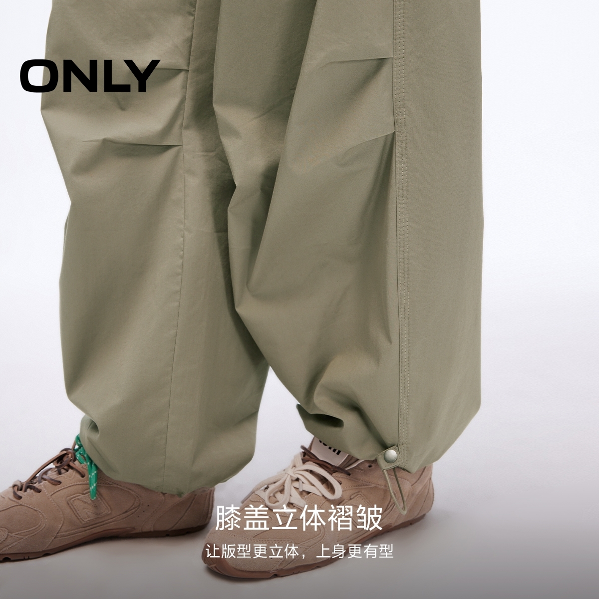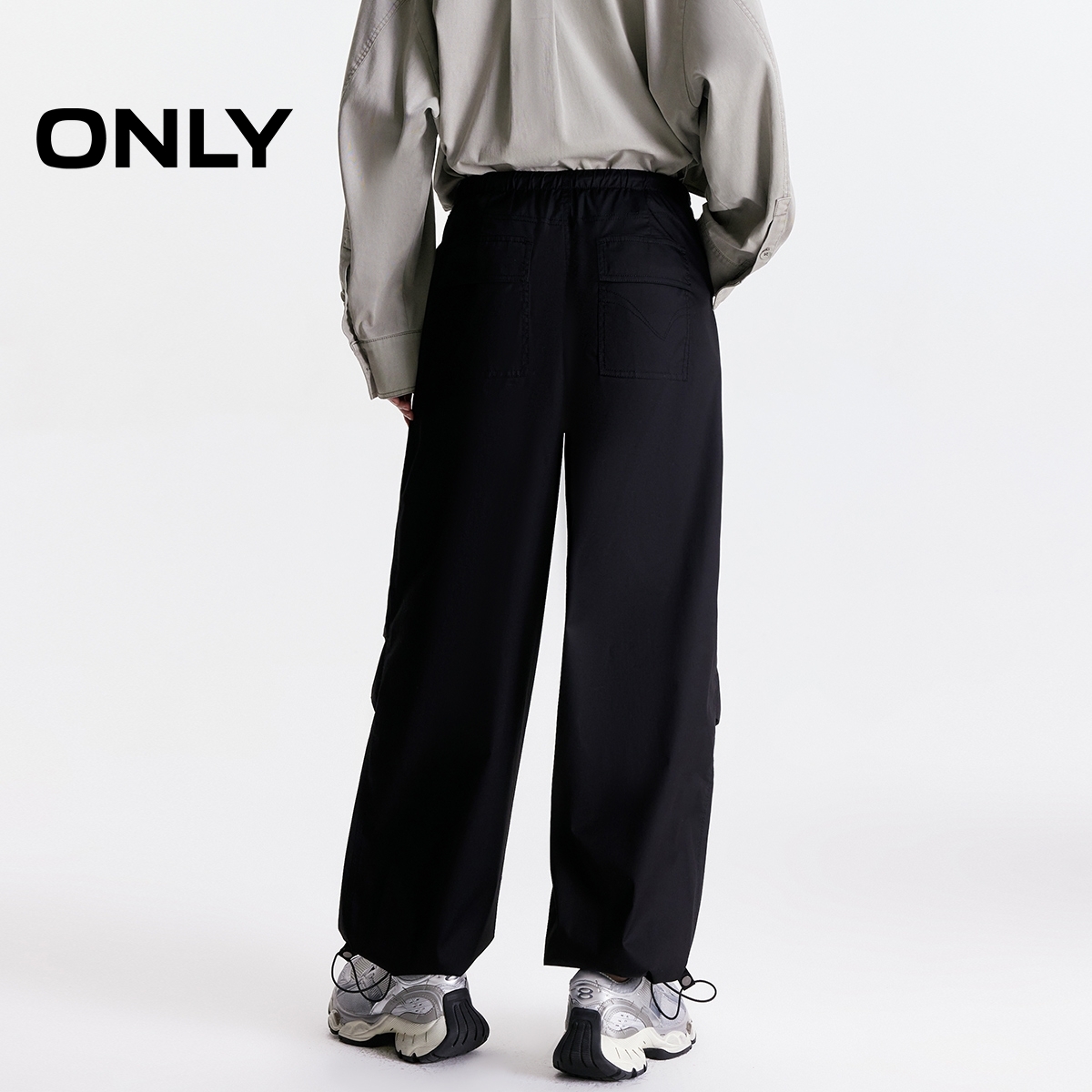 ONLY2025秋季新款工装风纯色伞裤宽松抽绳直筒裤长裤休闲裤女