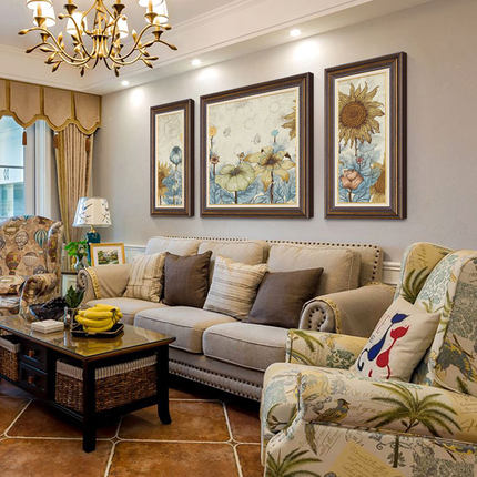 客厅装饰画美式复古三联墙上壁画正品高级油画肌理沙发背景墙挂画