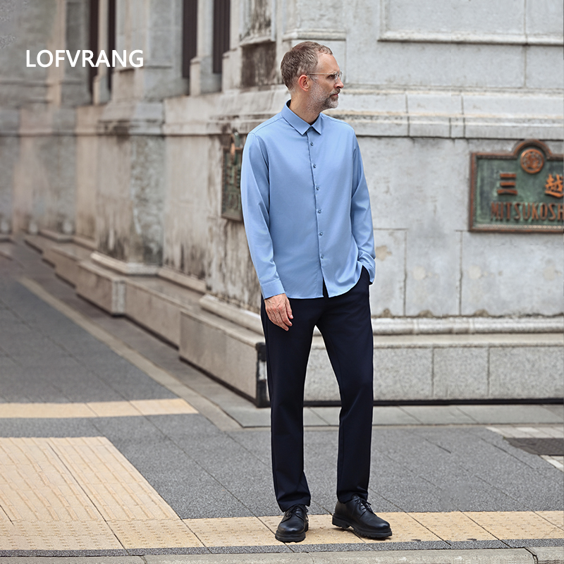 LOFVRANG领航员系列男士羊毛莱赛尔抗皱长袖衬衫多功能春秋季休闲