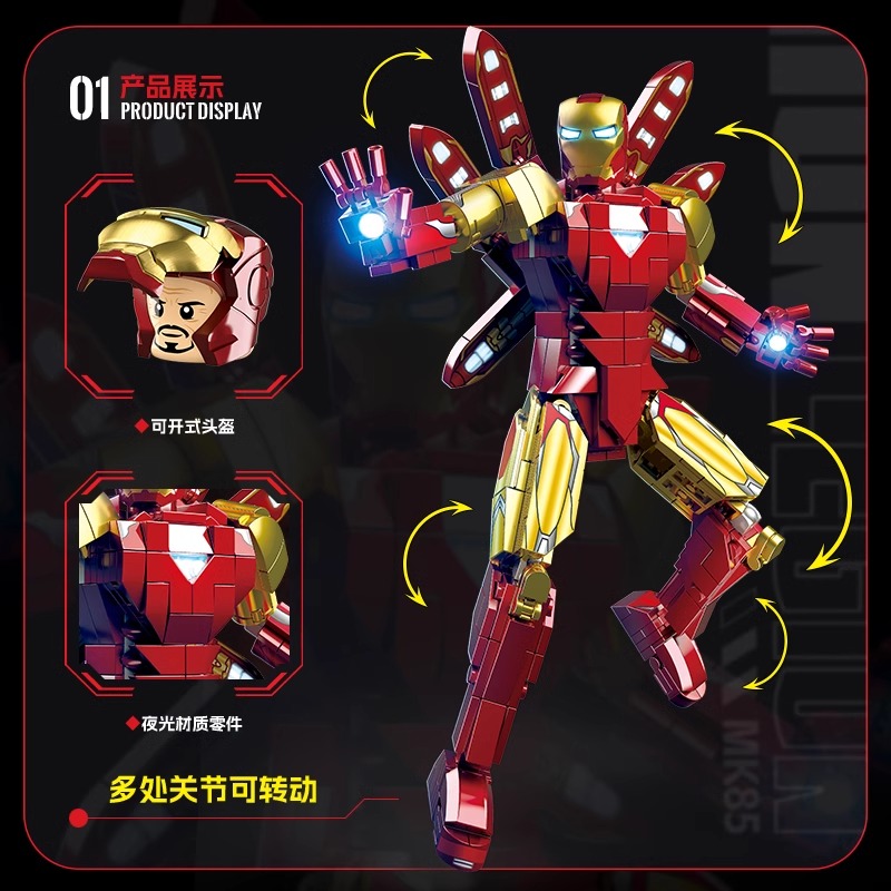 复仇者联盟4钢铁侠人偶模型机器反浩克机甲MK85男孩积木拼装人仔8