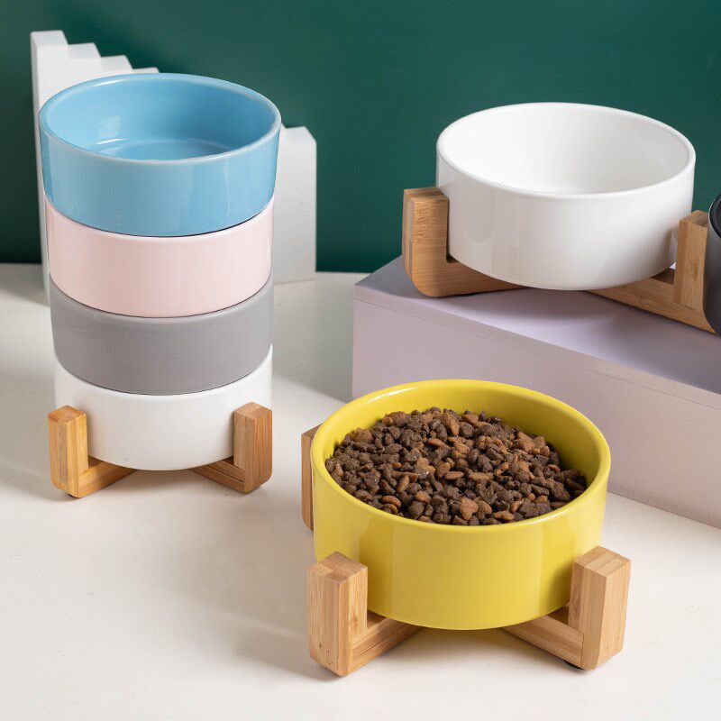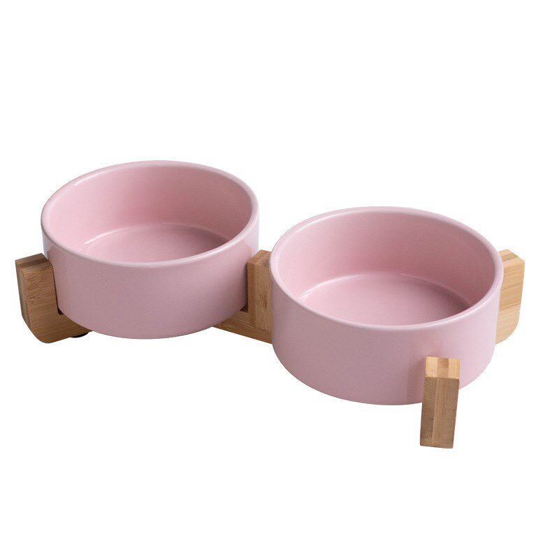 猫碗陶瓷双碗水碗一体木架防滑防打翻猫狗碗粮碗饮水碗黑色宠物碗