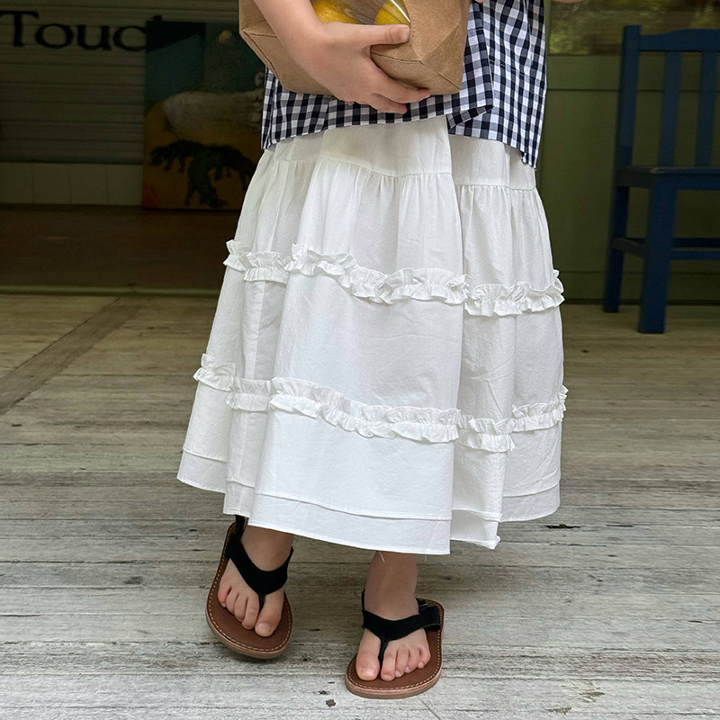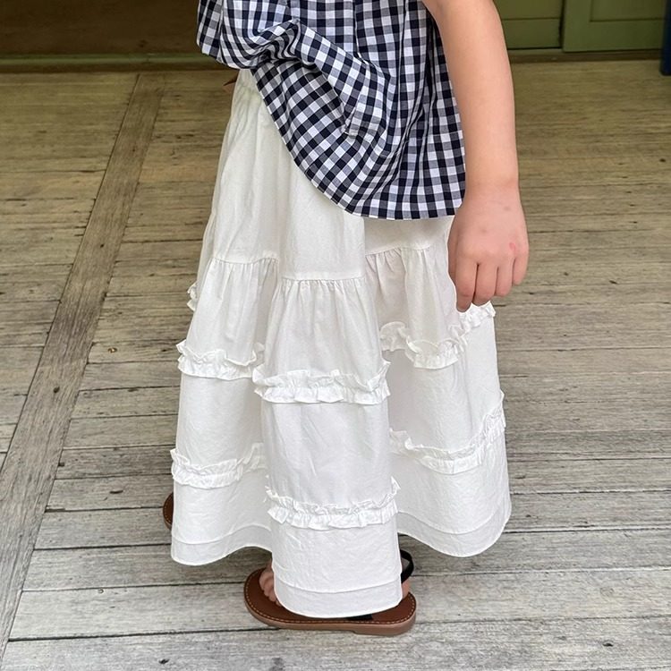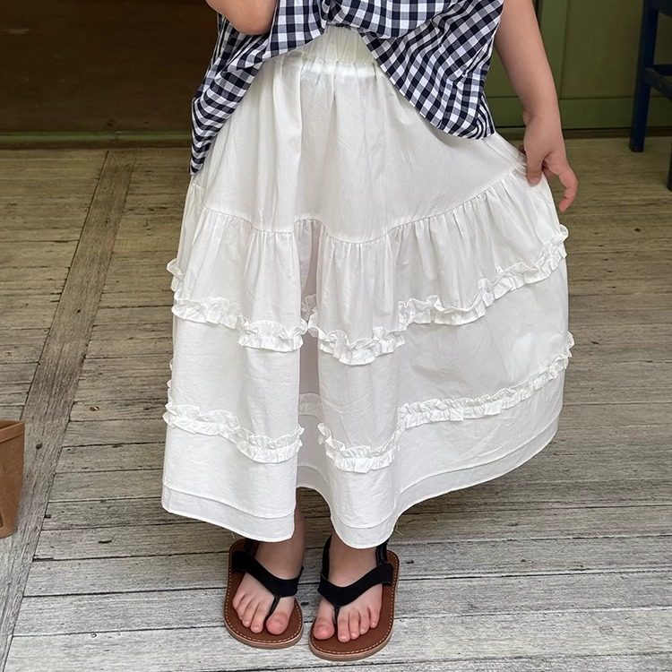 儿童百搭中长款棉半身裙夏季新款女童宝宝洋气层次感花边甜美裙子