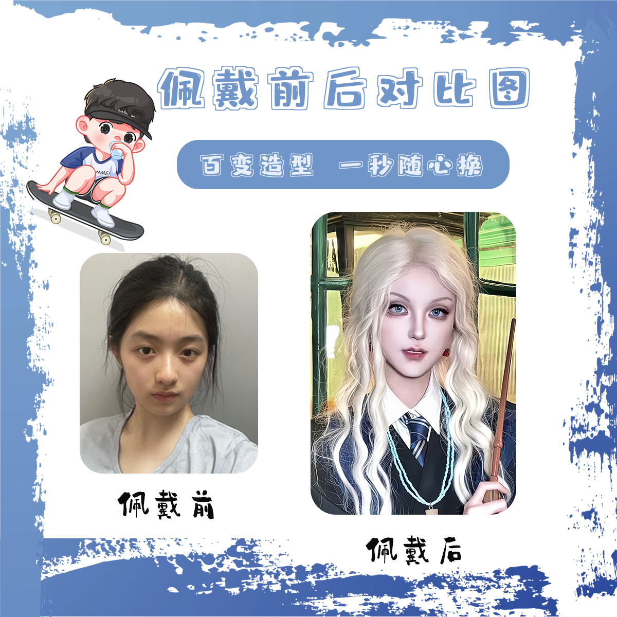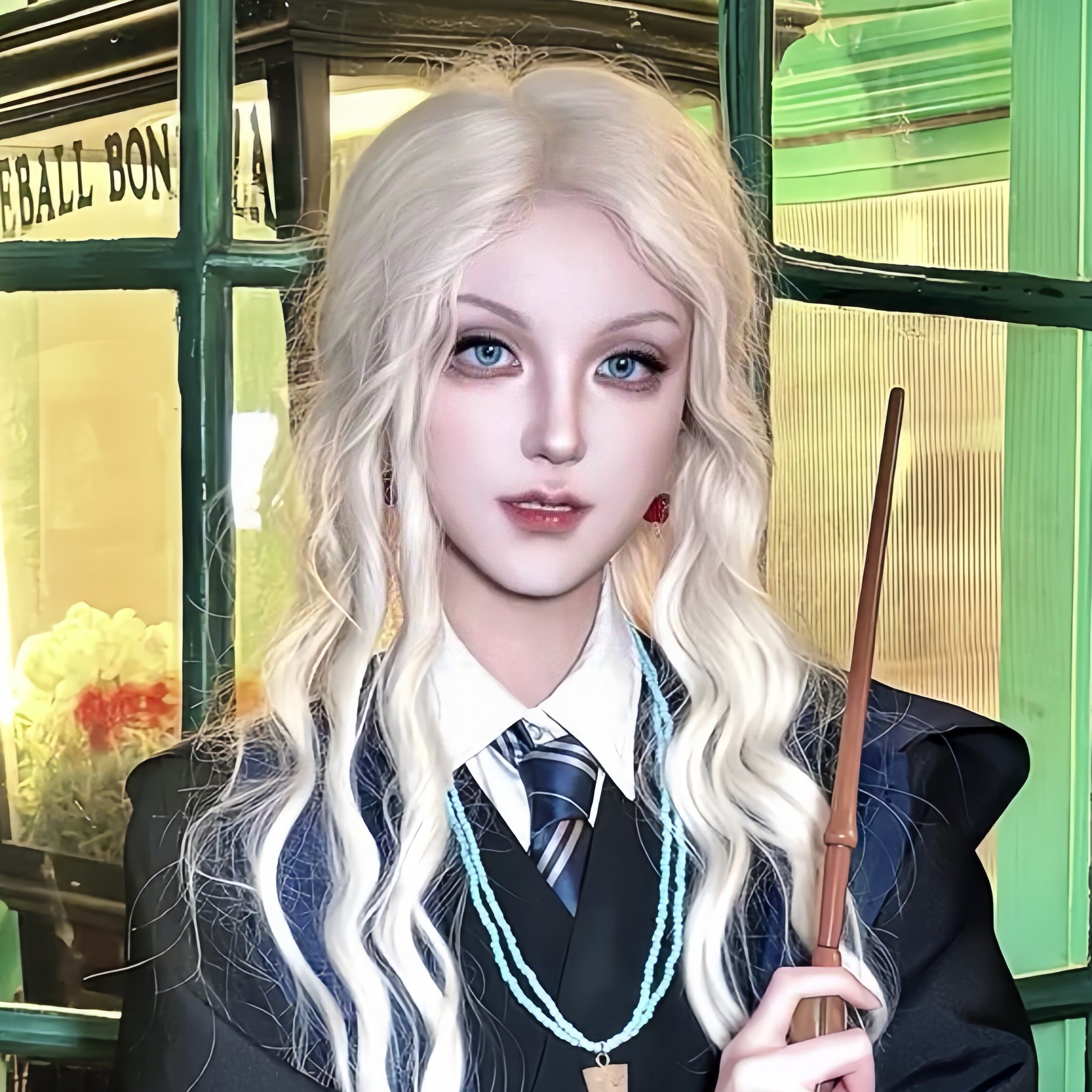 圣诞节卢娜cos假发浅金色长卷发哈利波特毛胚可修剪万用毛全头套