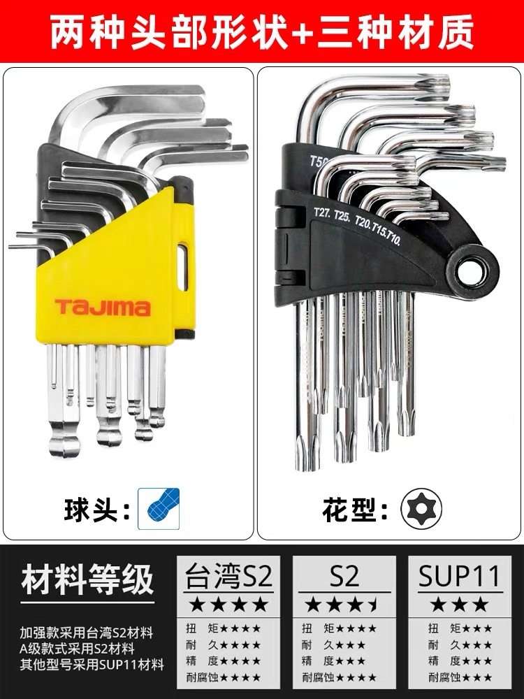 Tiajima日本田岛内六角扳手MN-B9全套球头加长工程师专用套装进口
