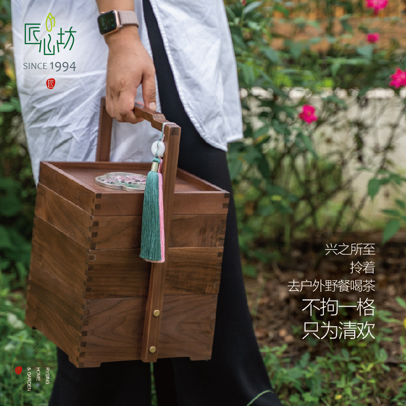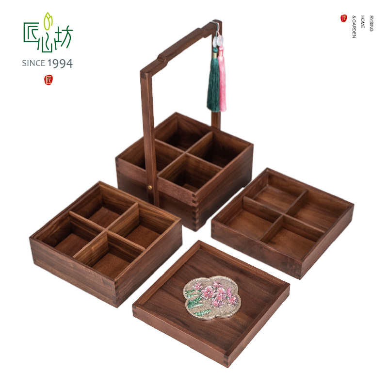 匠心坊食盒中式实木糕点盒木质托盘干果盘古风点心盒复古茶歇摆件