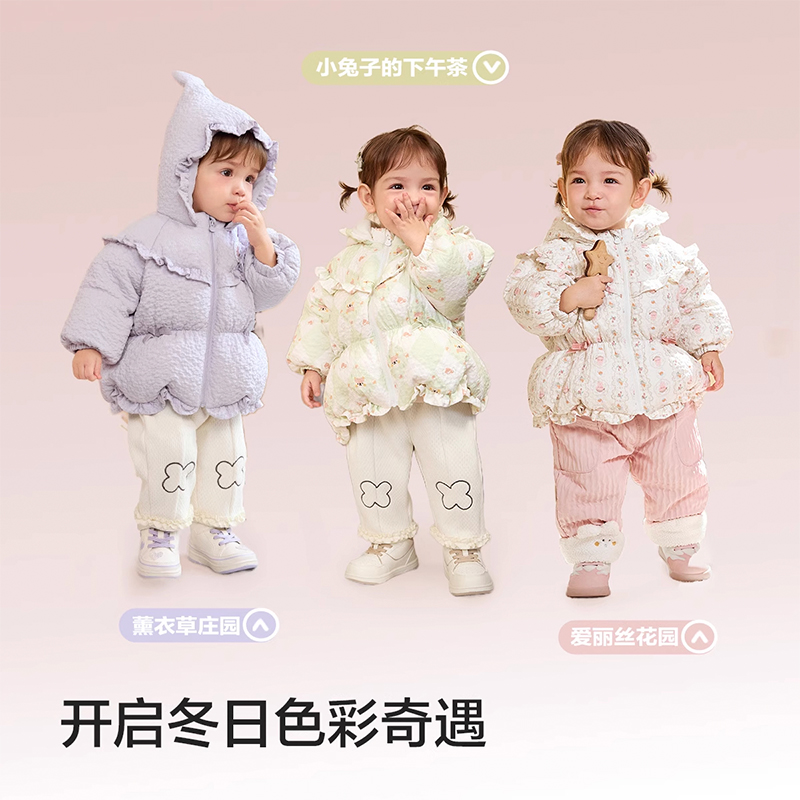 巴拉巴拉婴儿花版羽绒服女童冬季短款外套保暖2025新款甜美时尚萌