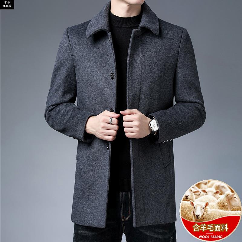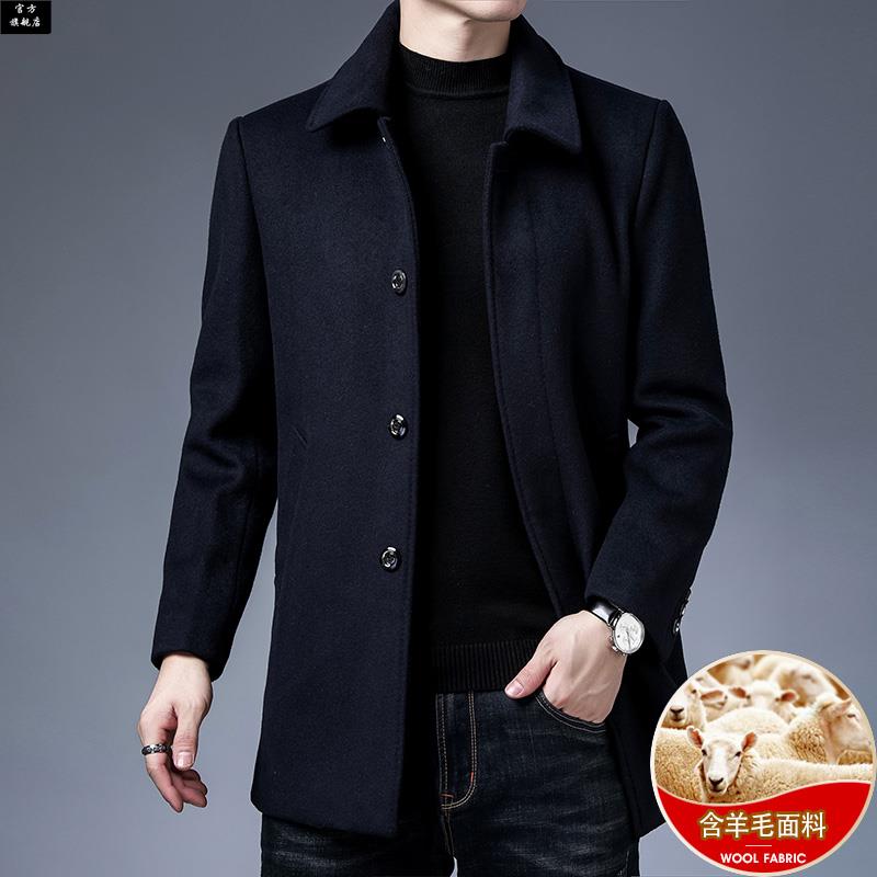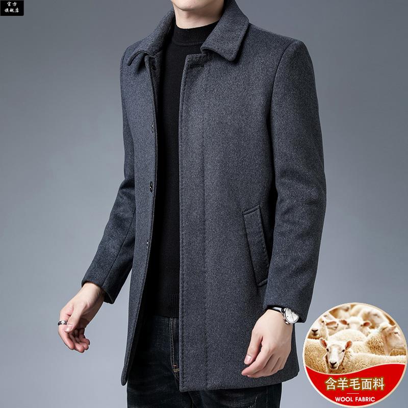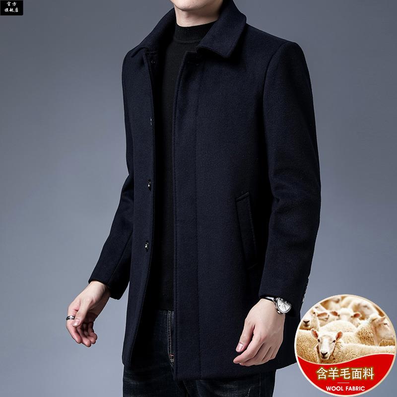保罗官方毛呢大衣男短款冬季加厚含羊毛呢子西装中年爸爸冬装外套
