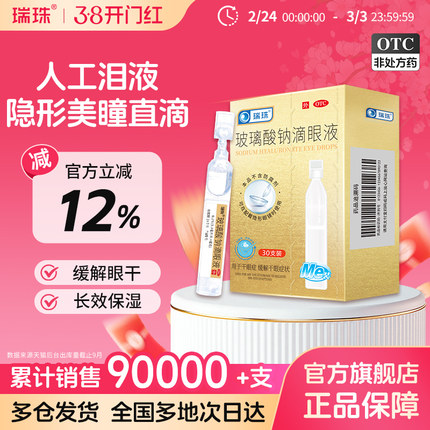 瑞珠玻璃酸钠滴眼液30支润眼液眼干眼症缓解眼疲劳人工泪液眼药水