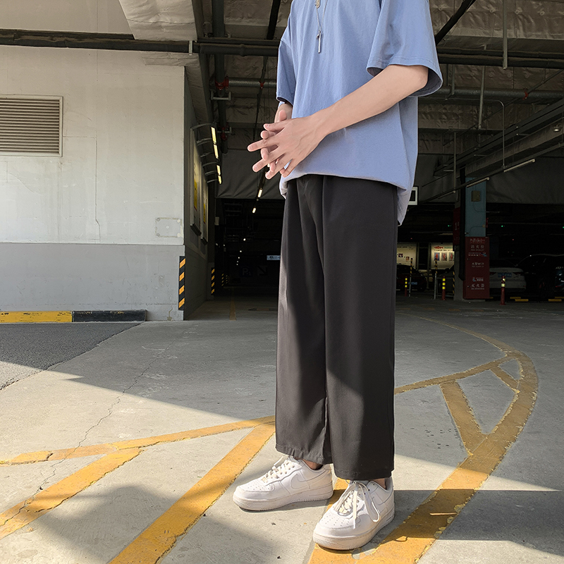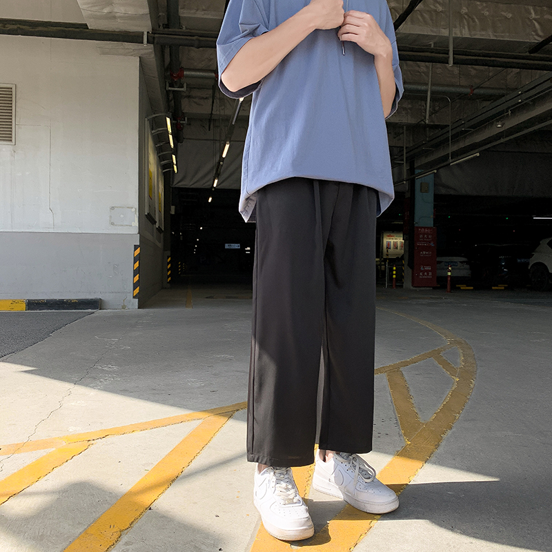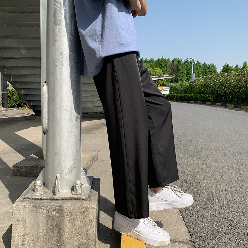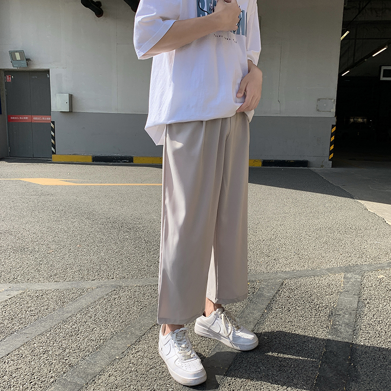 垂感九分冰丝裤子男士秋季薄款潮流学生百搭直筒宽松bf阔腿休闲裤