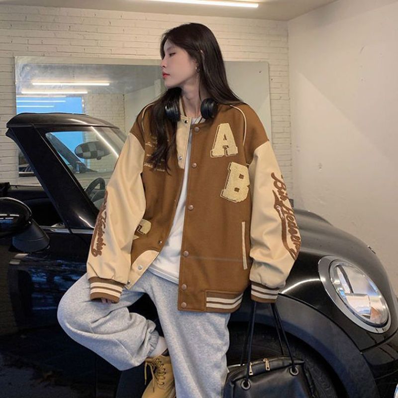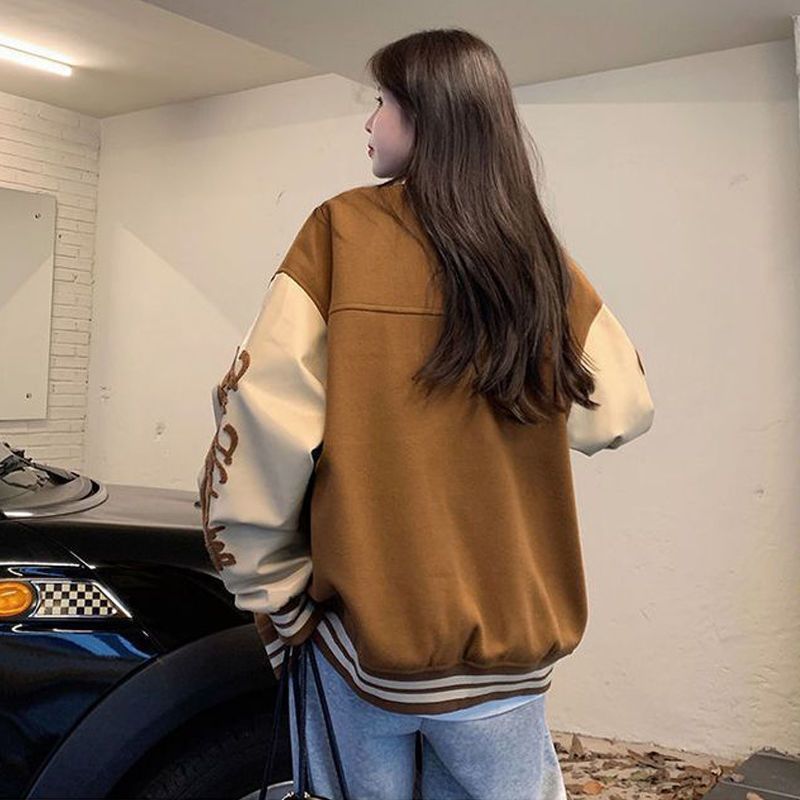 vintage美式拼接刺绣棒球服春秋季新款百搭学生韩版宽松外套女ins