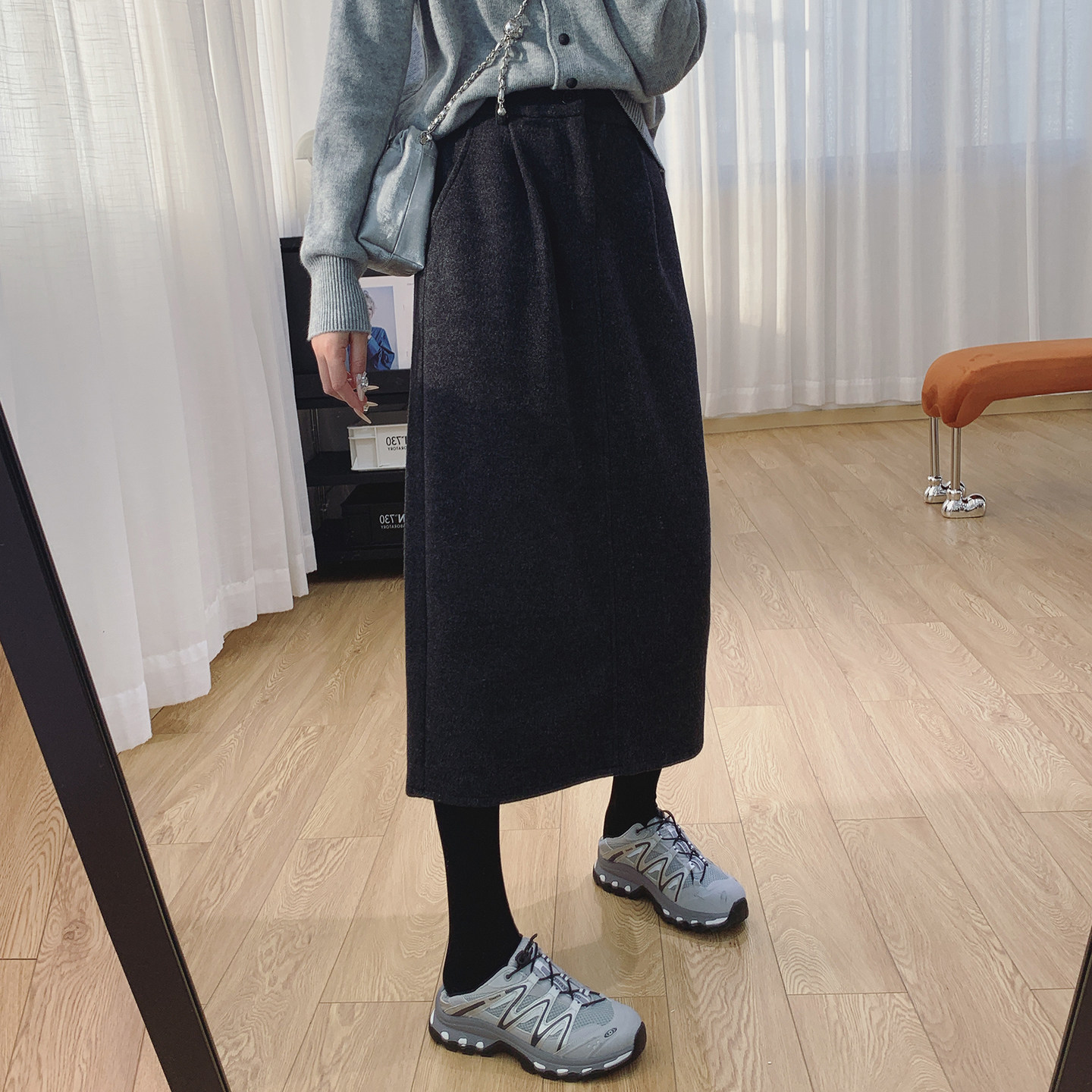 后半松紧腰绵羊毛加厚毛呢裙秋冬花苞半身裙女冬季裙子A字冬裙
