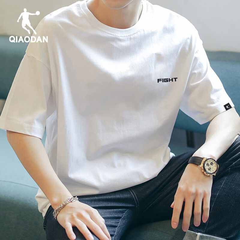 中国乔丹T恤短袖男士2025夏季新款休闲运动跑步宽松半袖黑色上衣