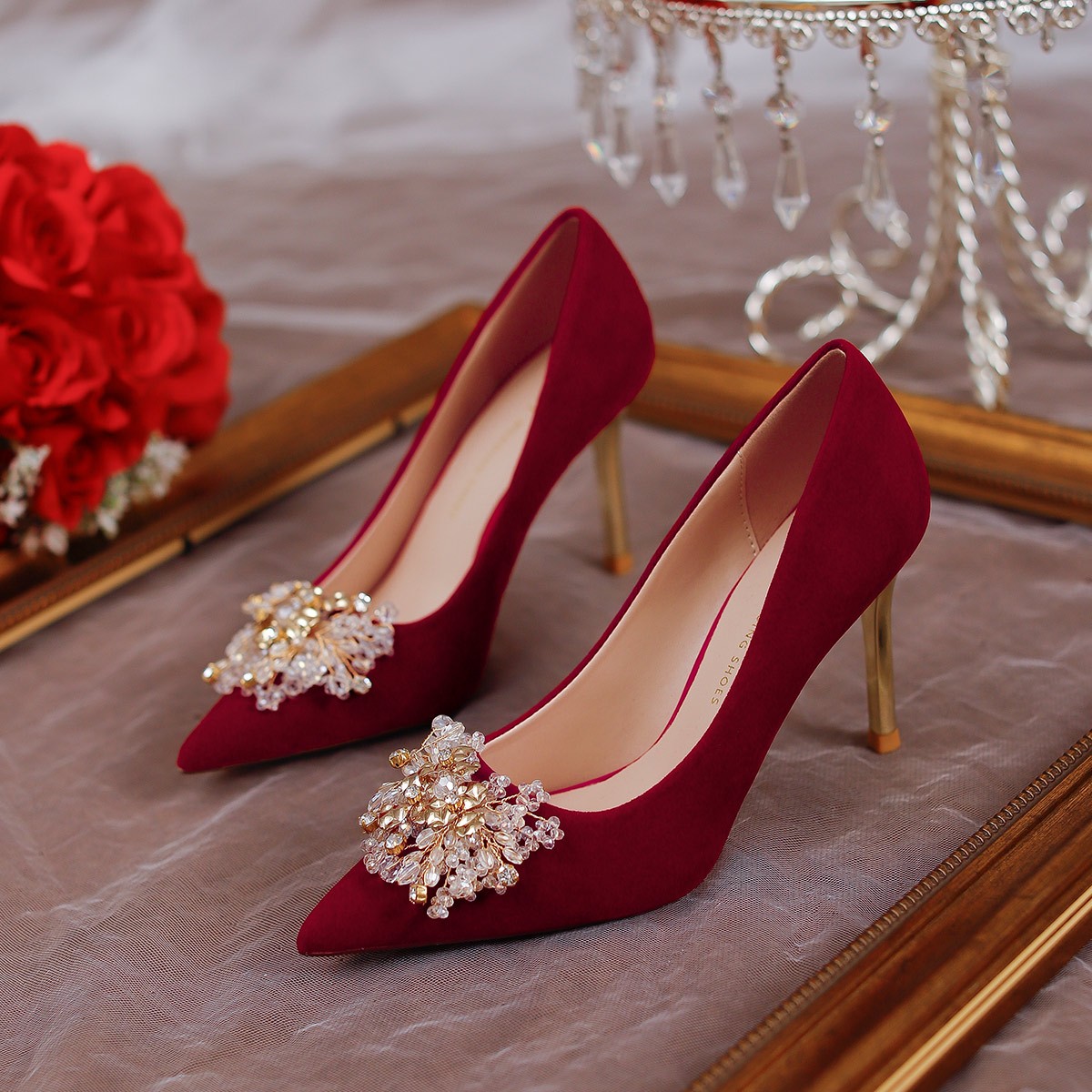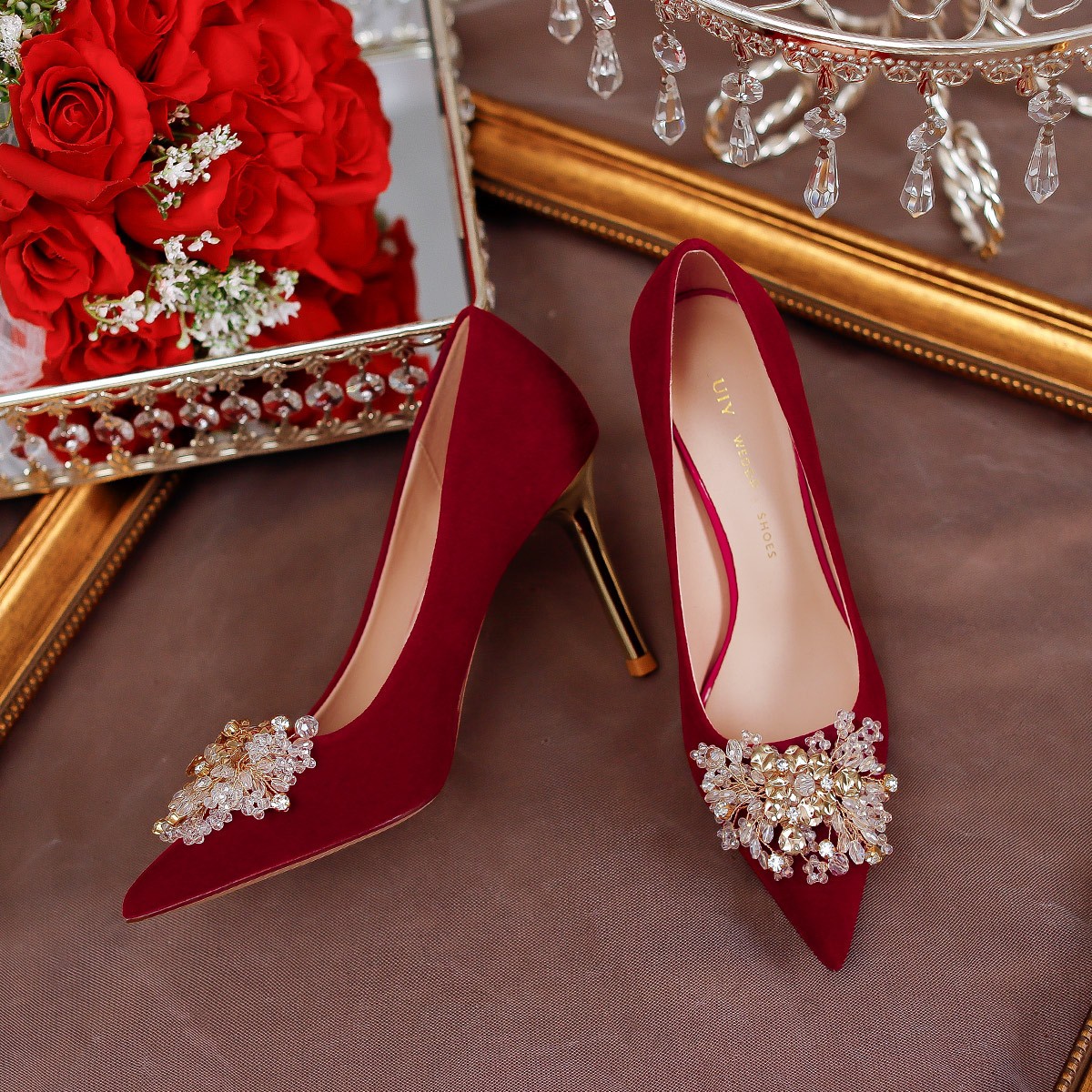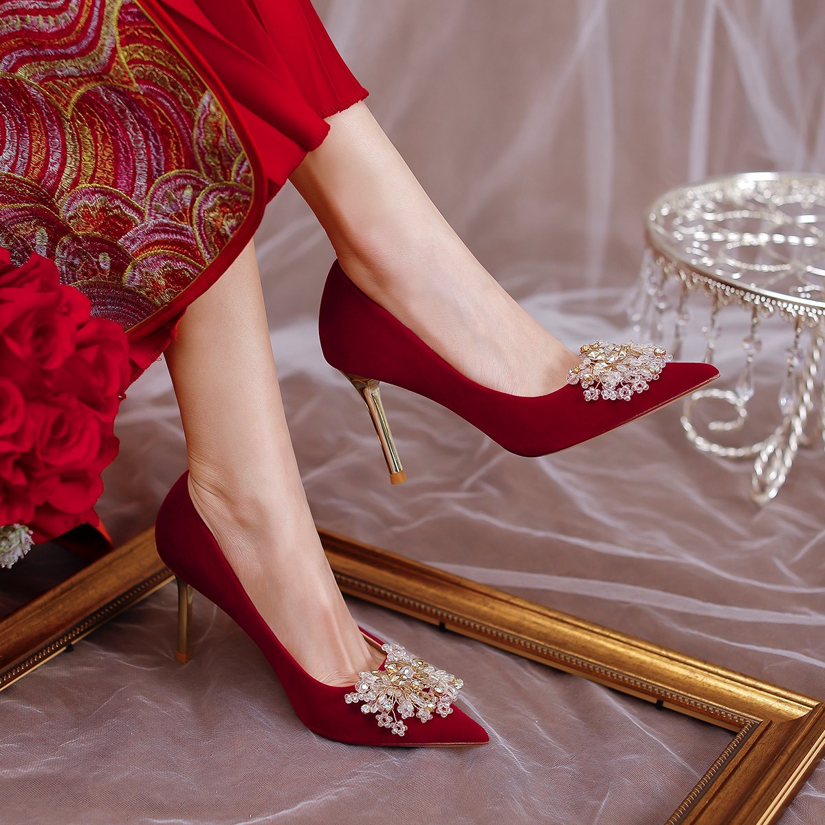 高级感婚鞋新娘鞋2024新款秋红色高跟鞋秀禾结婚鞋婚纱两穿不累脚
