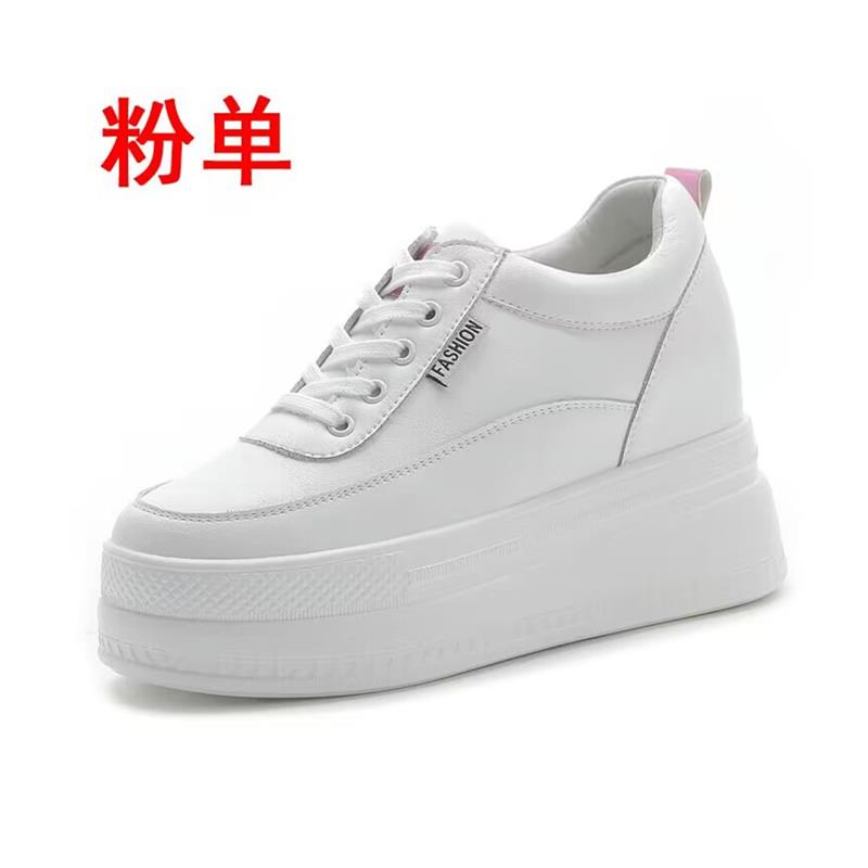 踏如女鞋内增高9公分秋冬百搭显瘦全皮小白鞋休闲运动鞋坡跟厚底