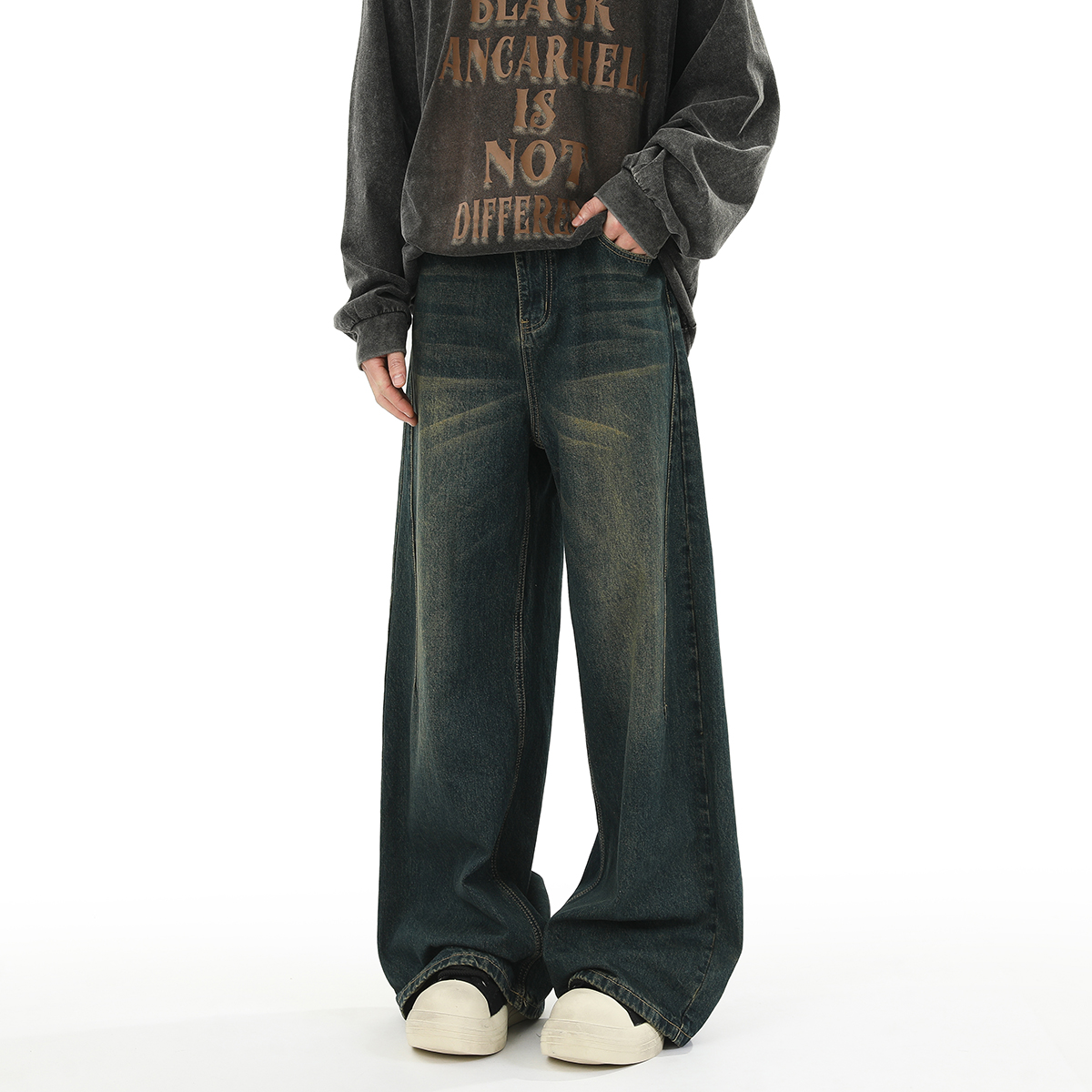 厚款高街宽松阔腿牛仔裤男195高个子加长男裤子120CM潮流拖地长裤