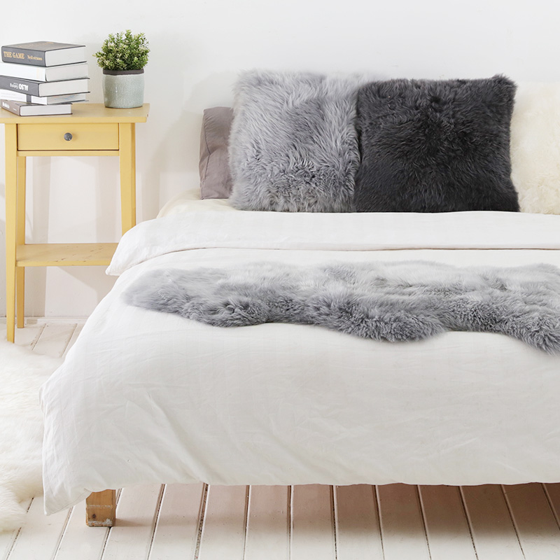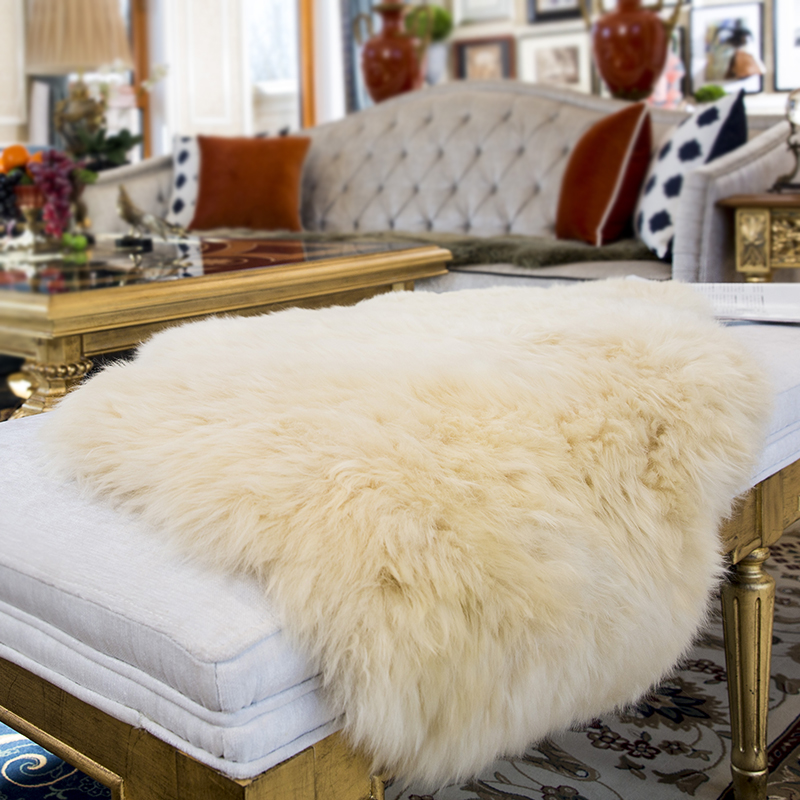 澳世家 整张羊皮床上装饰毯 欧式家用床尾搭床搭毯北欧纯色床尾巾