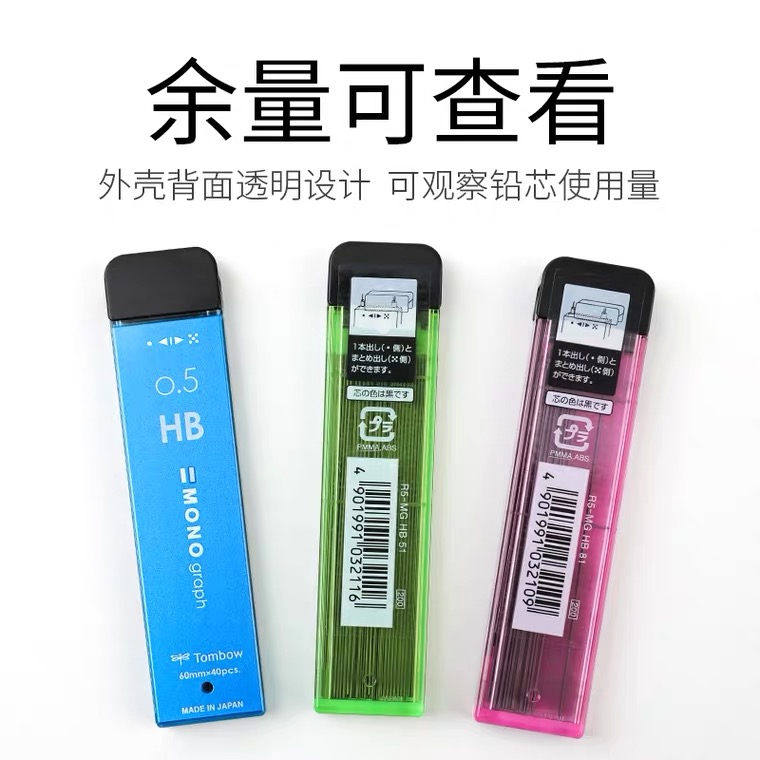 日本tombow蜻蜓自动铅笔活动铅芯0.5mm 0.3mm不易断学生替芯R5-MG 学生用替芯黑色铅芯HB/2B/B 包邮40根