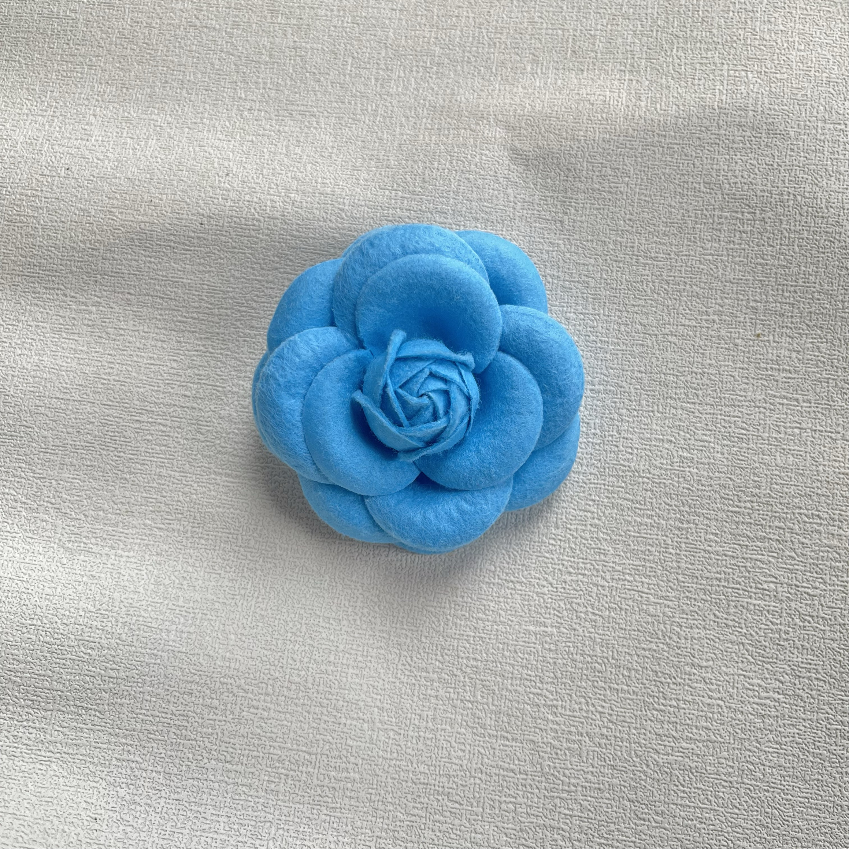 绝美高定蓝色系立体山茶花胸针小香别针女配饰精致小众赫本风配饰