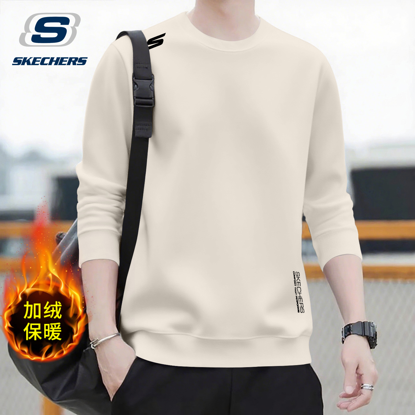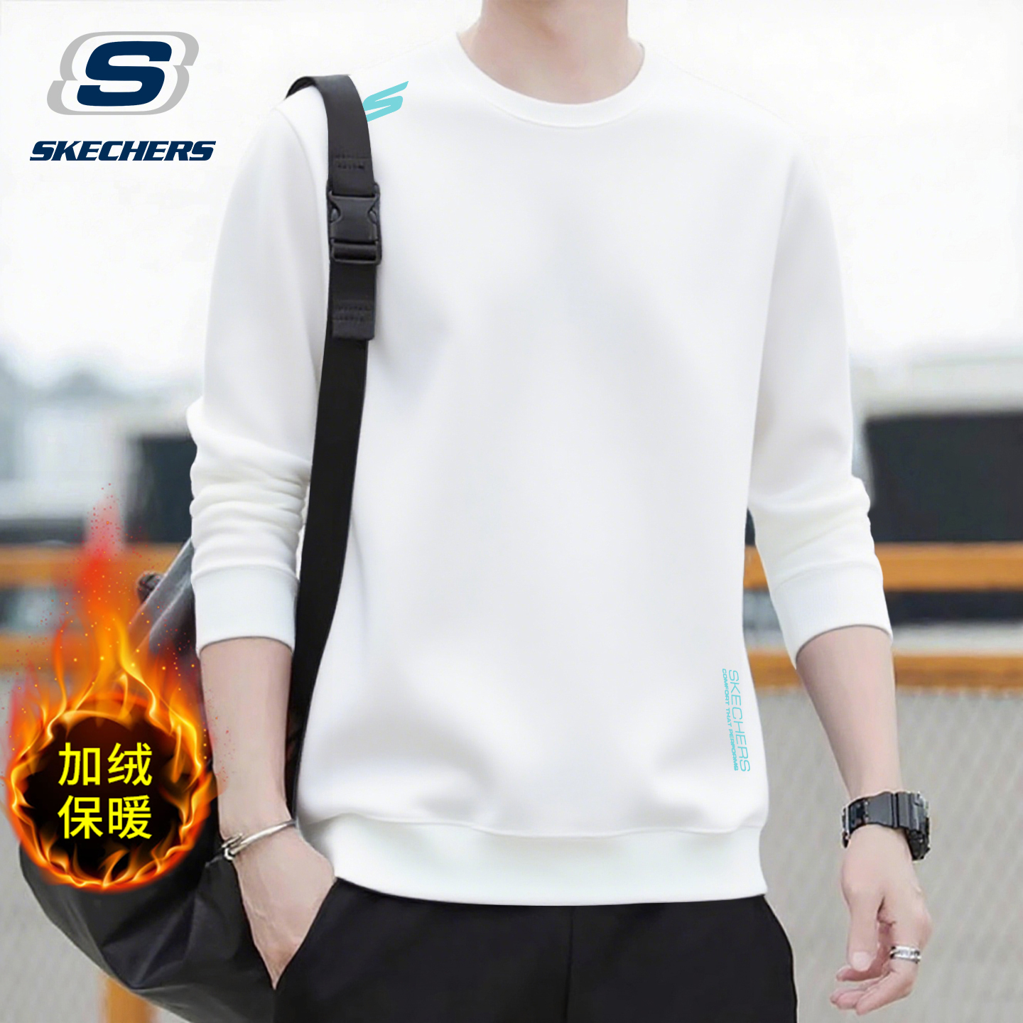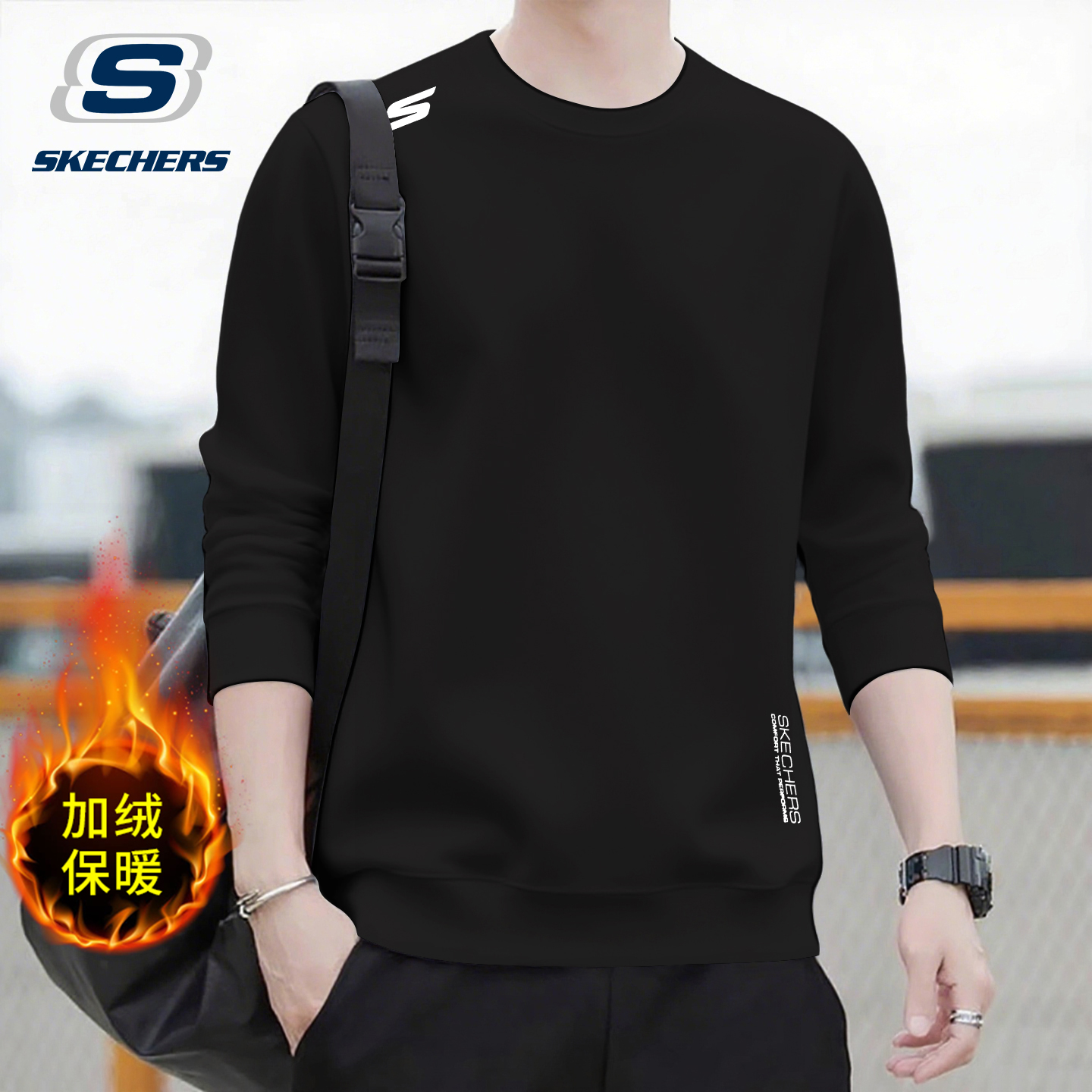 斯凯奇加绒运动卫衣男圆领宽松棉