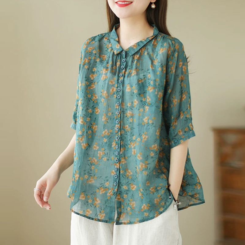 妈妈亚麻衬衫女夏2025新款普宁超火减龄洋气高端棉麻宽松中袖上衣