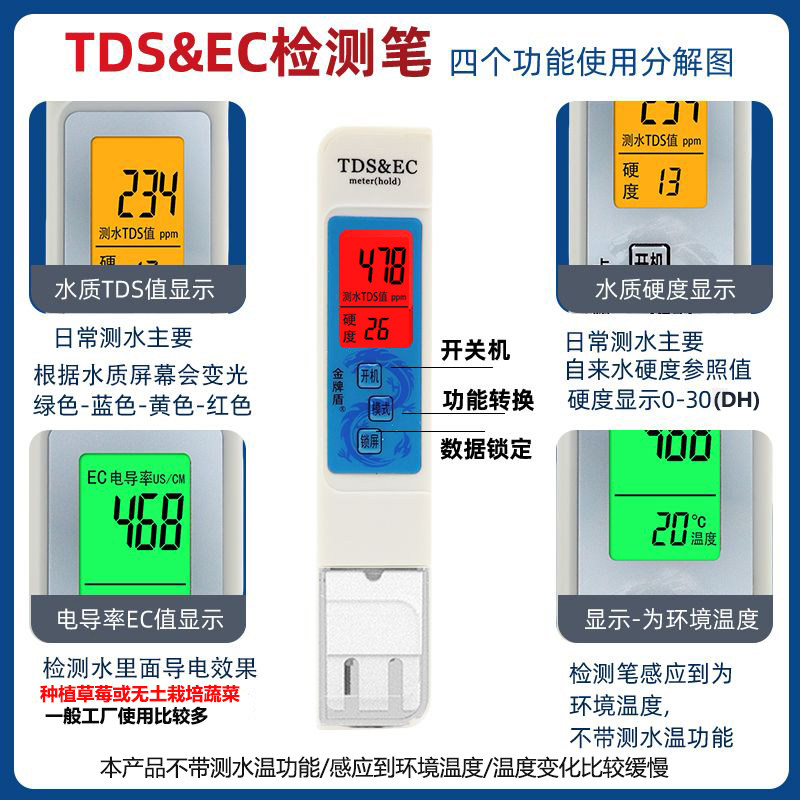金牌盾2026升级四色预警TDS水质检测笔高精度饮用自来水测试仪器