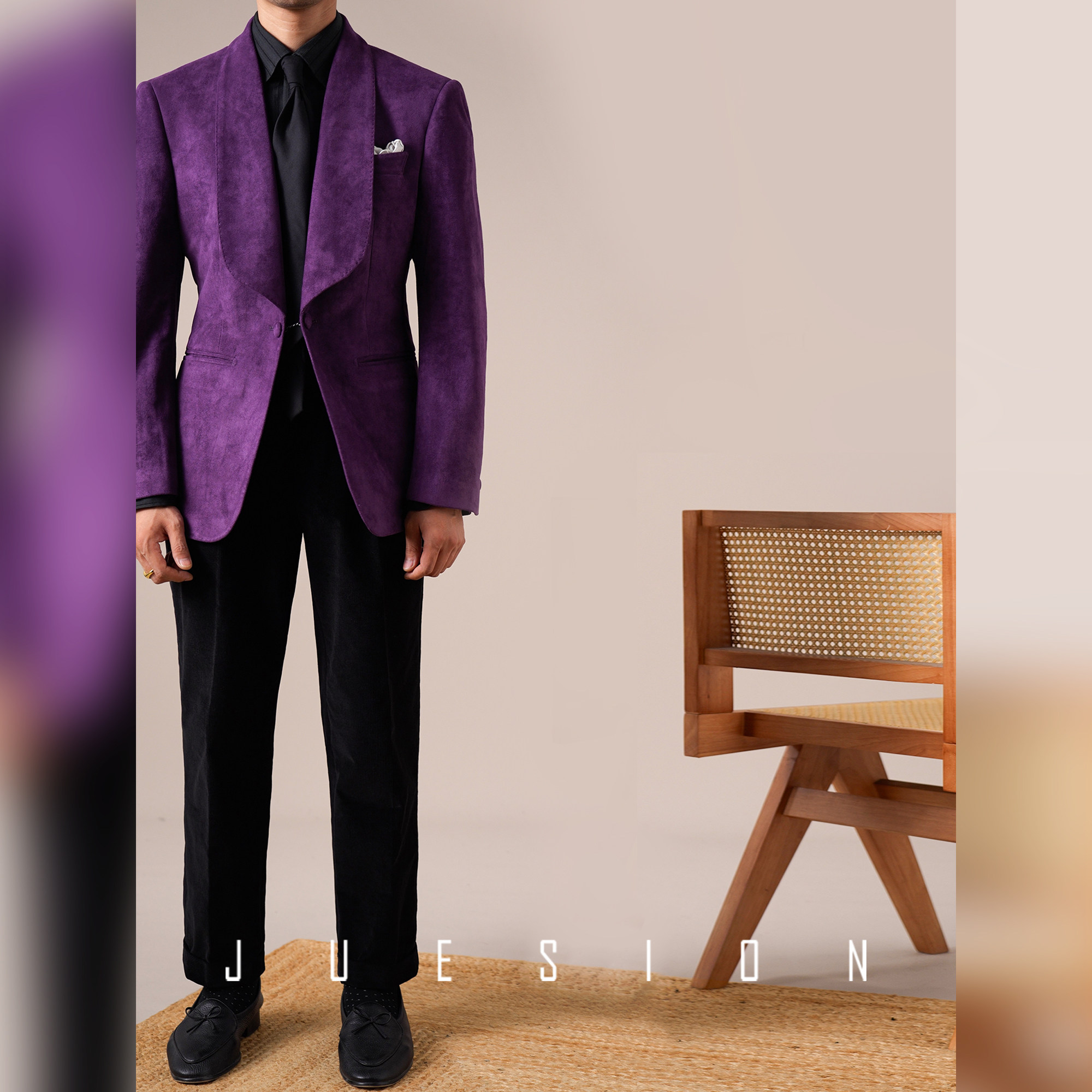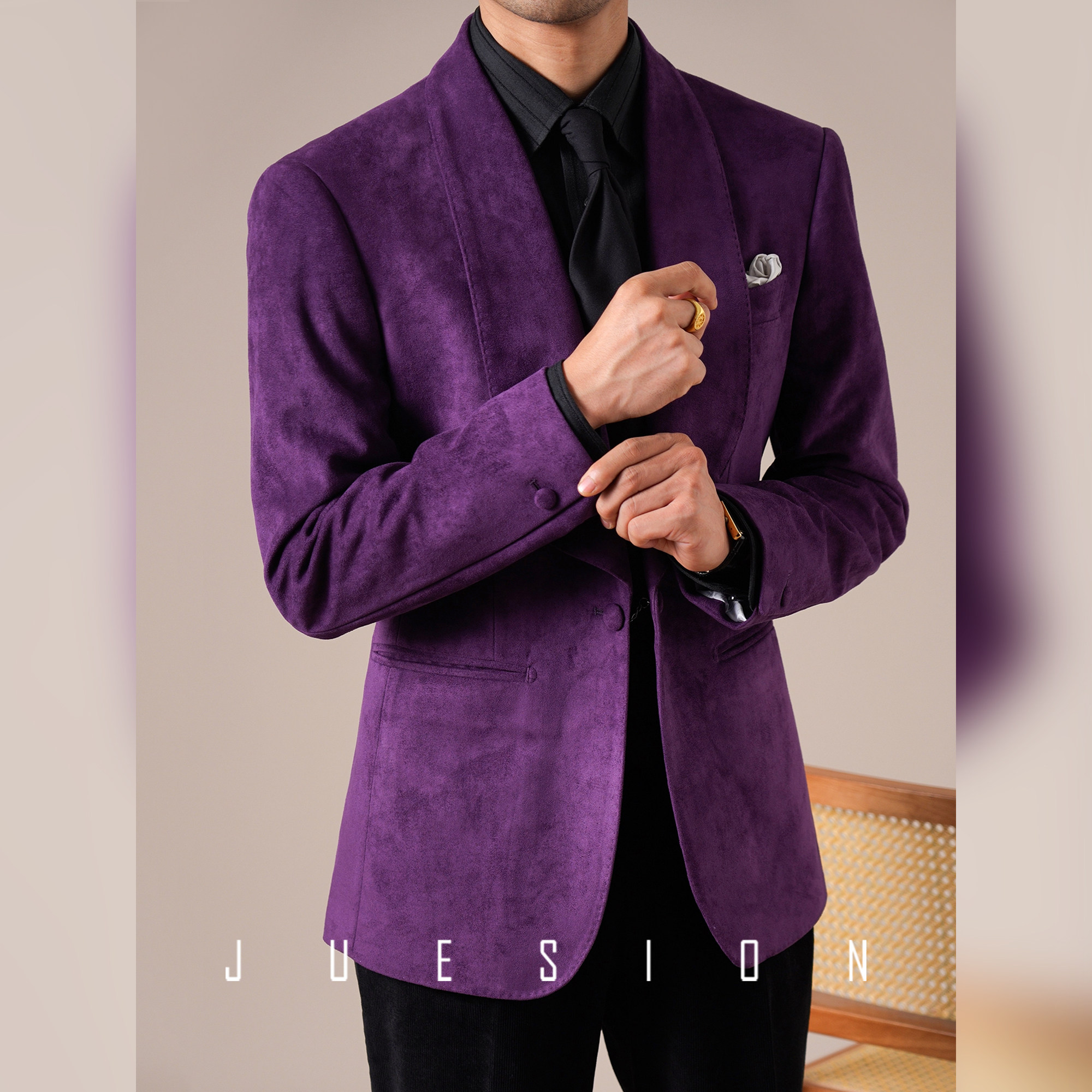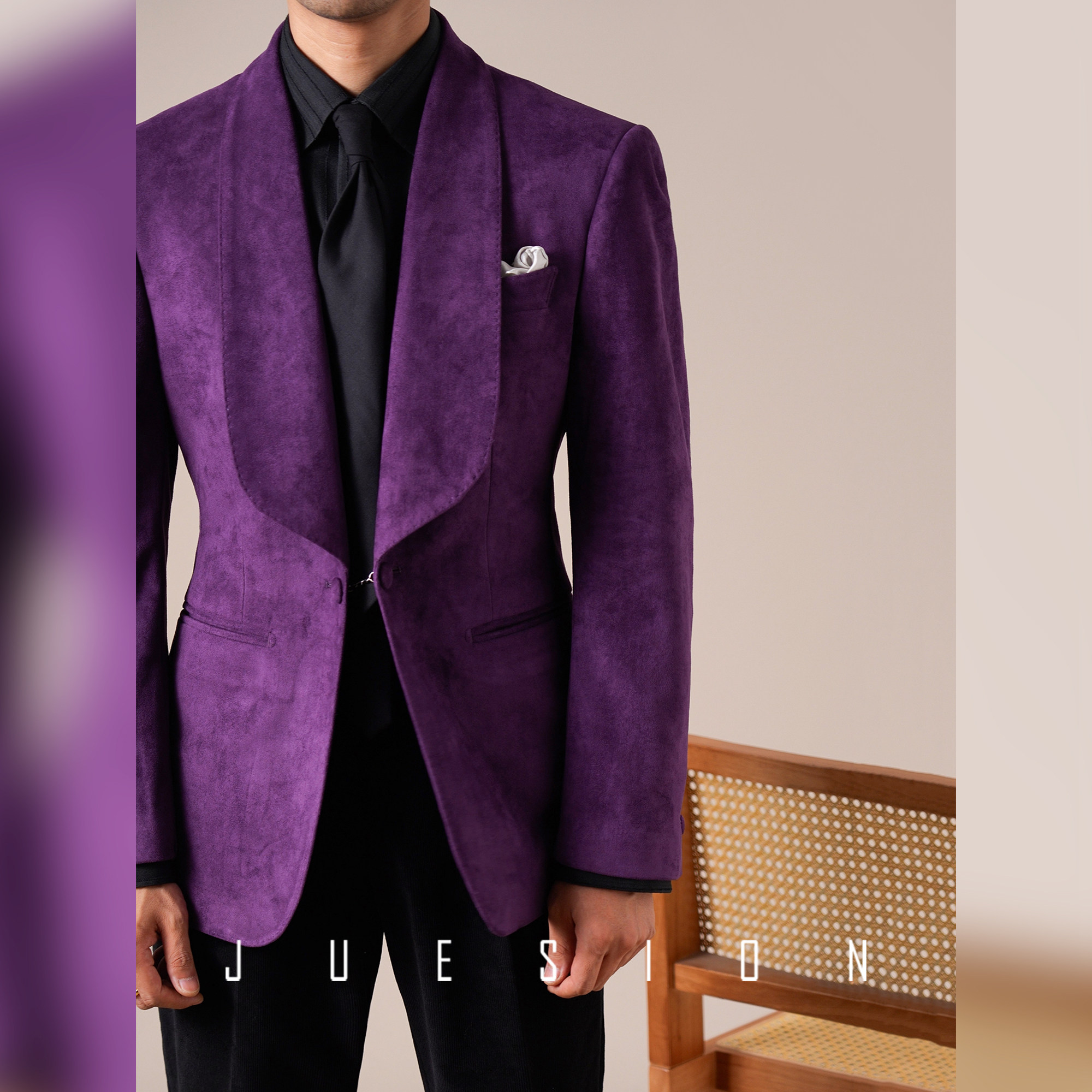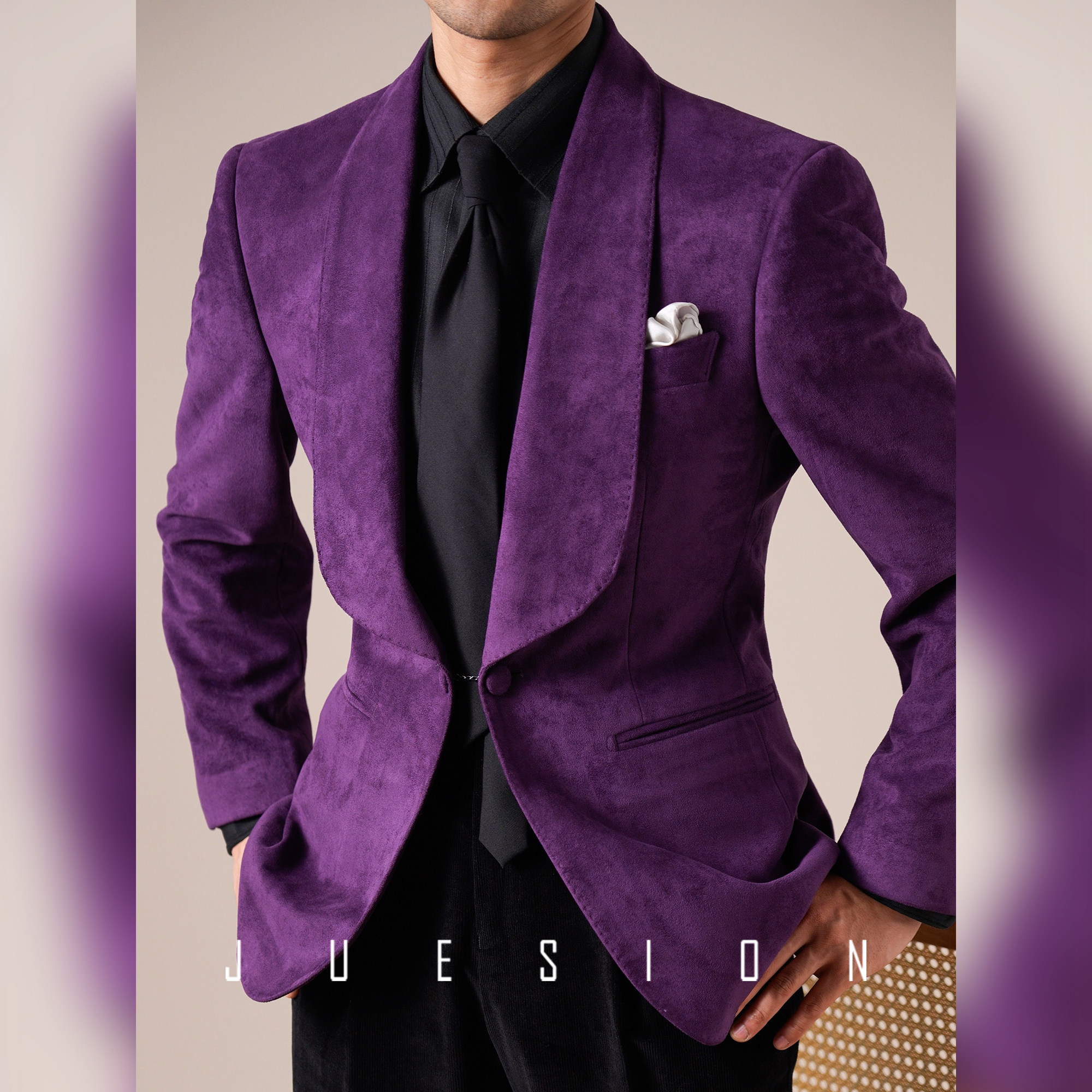 JUESION 青果领西服外套男单排扣商务绅士一粒扣结婚新郎礼服单西