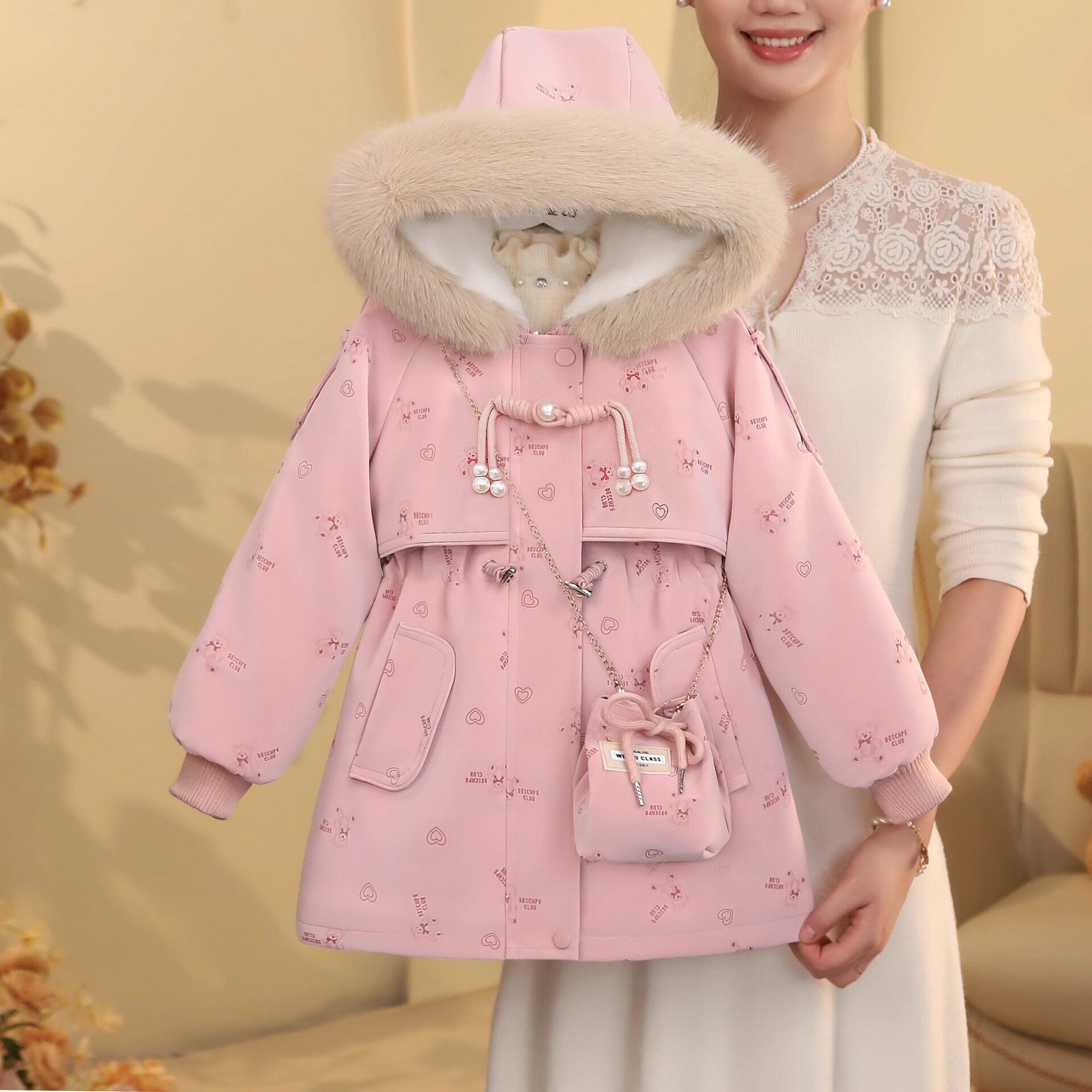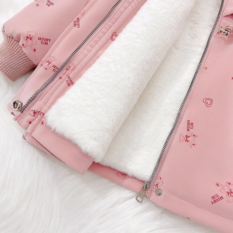 2025新款女童加绒外套秋冬季儿童加厚棉服中大童碎花休闲派克服