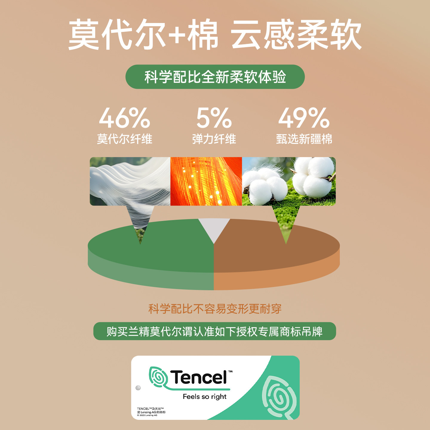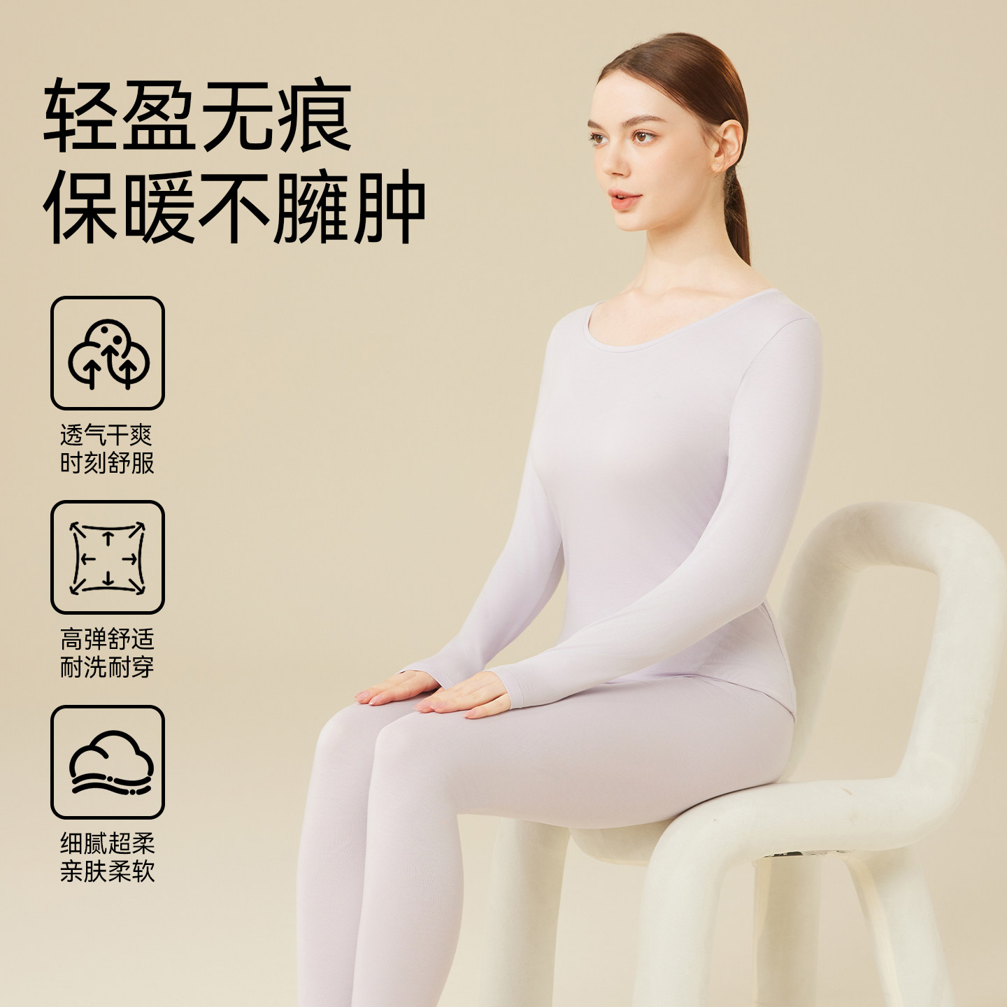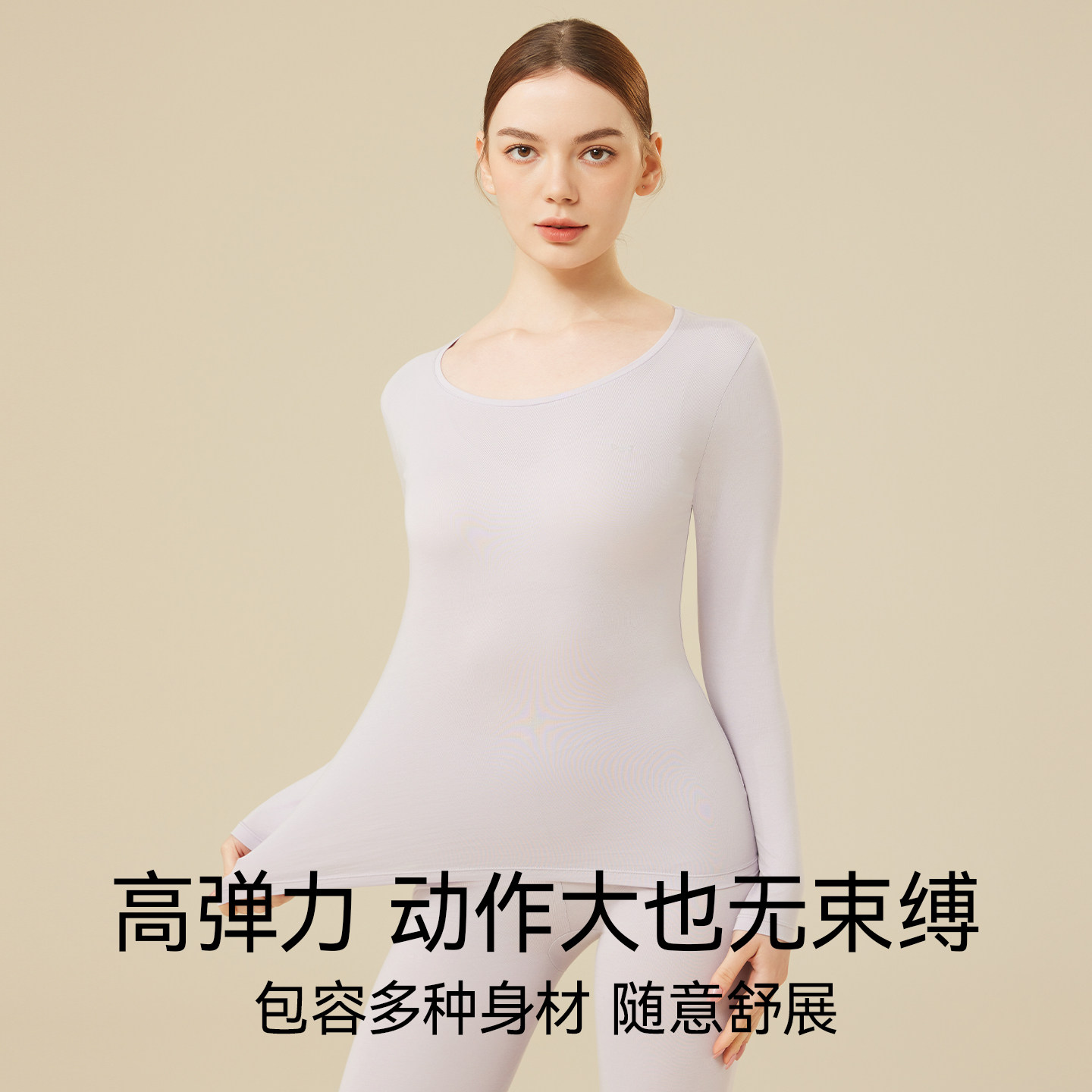 猫人莫代尔棉白色长袖内搭打底衫女2025新款秋冬季圆领薄上衣套装