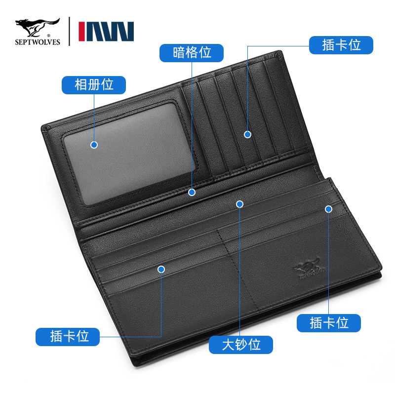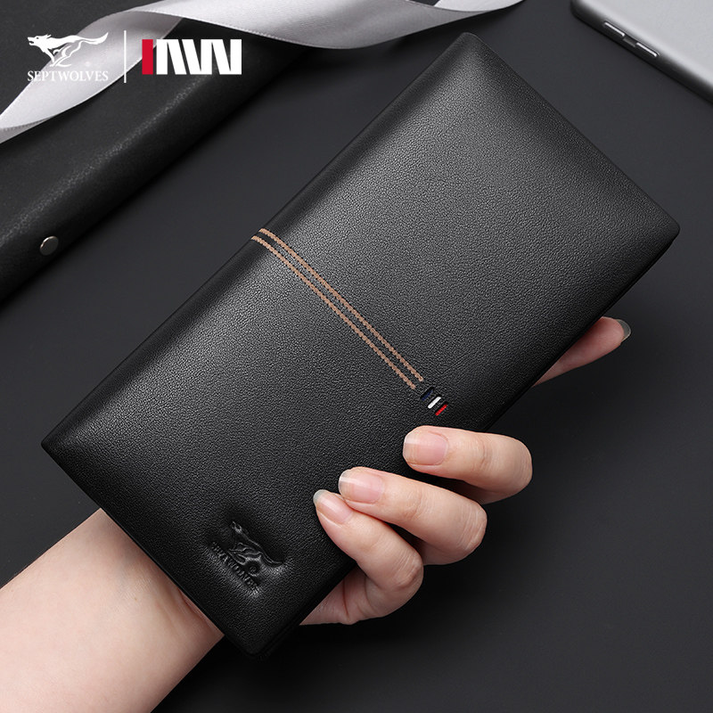 七匹狼钱包男士真皮2024新款正品卡包一体长款钱夹纯牛皮爸爸皮夹