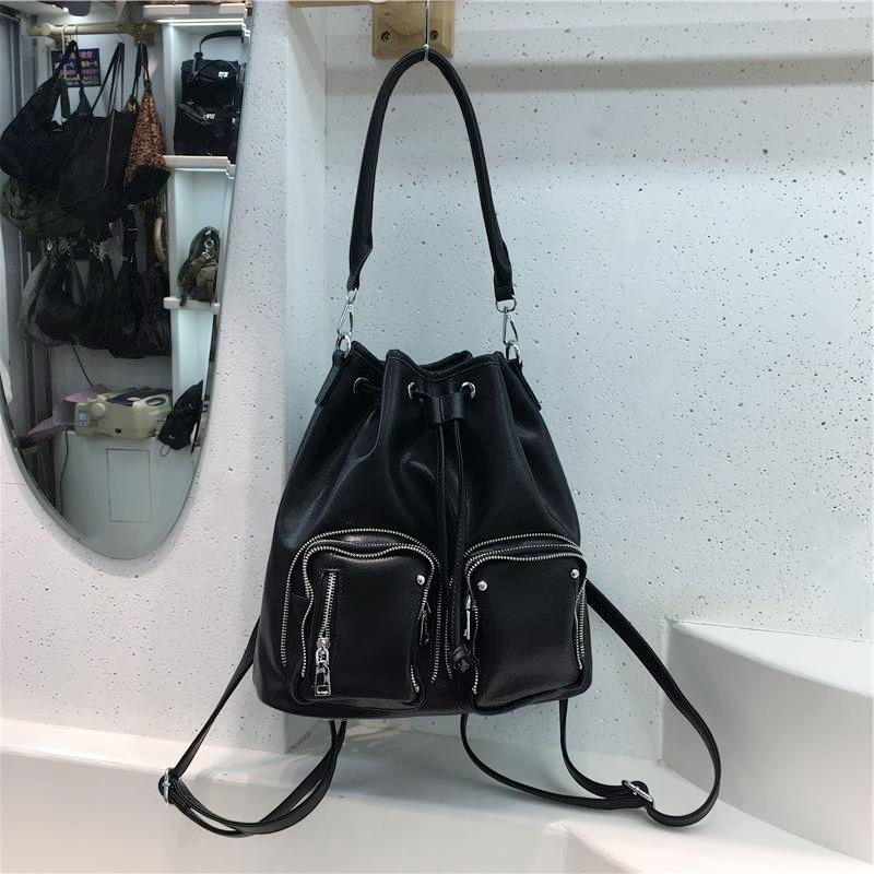 小脏柜 2025新款大容量辣妹机车包休闲潮街头单肩水桶包双肩背包