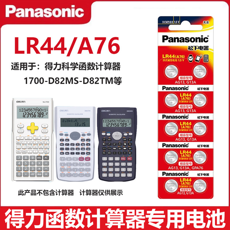松下LR44电池适用于得力991cnx科学函数计算器991cnx-1700-D82MS-D82TM计算器1.5V纽扣电池A76/AG13/1154