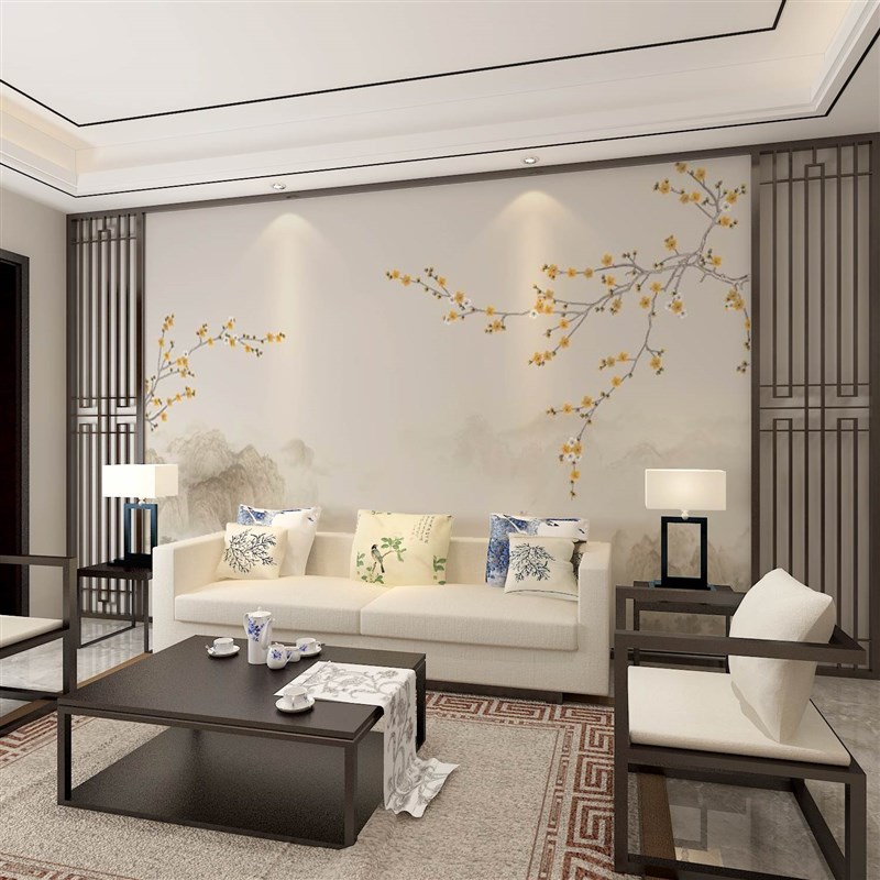 中式花鸟墙纸壁画客厅电视背景墙壁纸沙发卧室墙S布壁布床头影视
