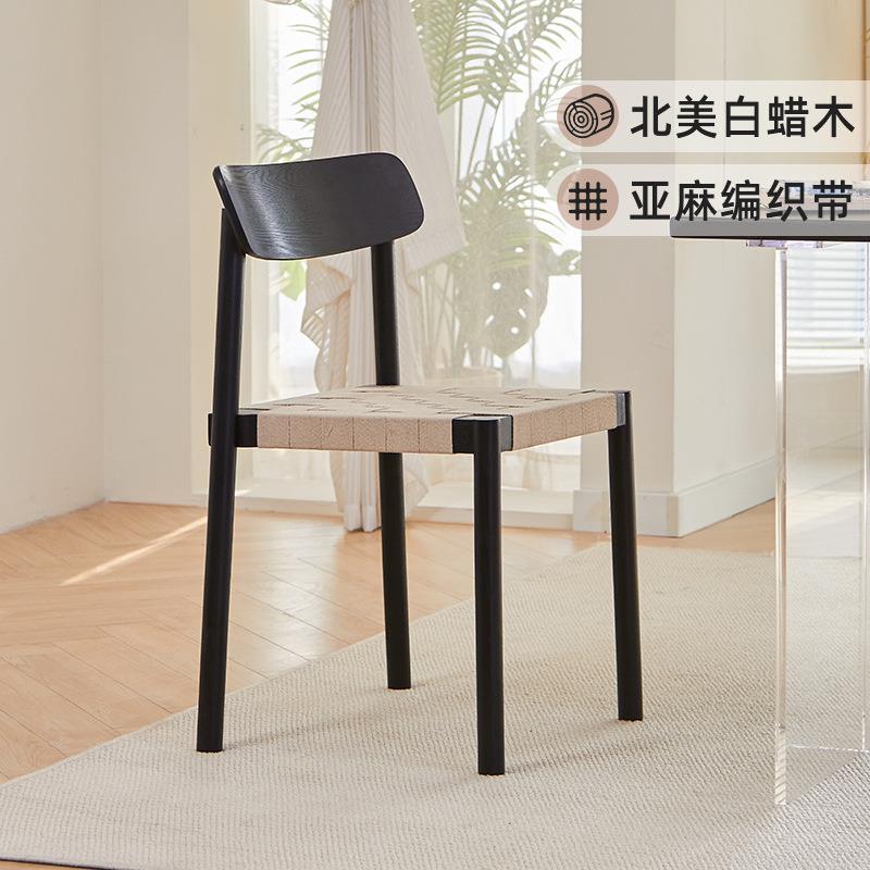 侘寂风实木绳编餐椅原木风设计师休闲椅子北欧日式家用民宿靠背椅
