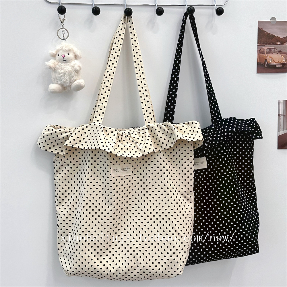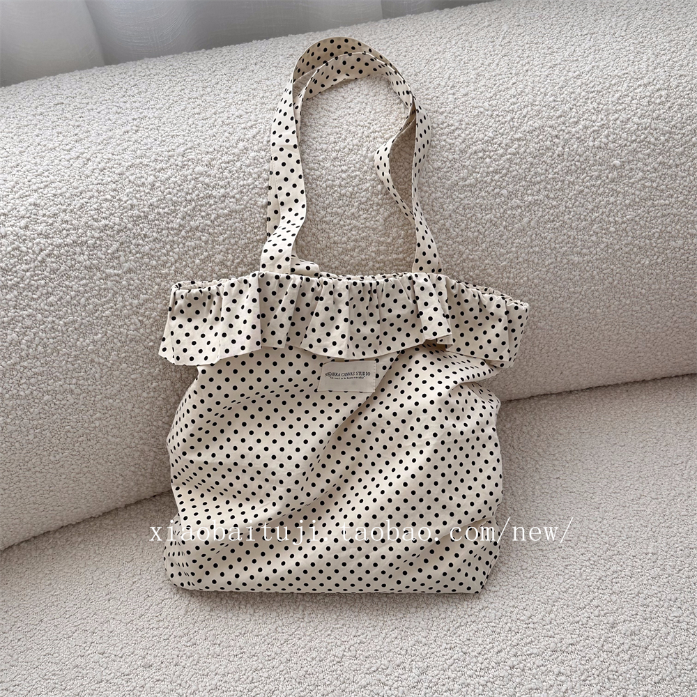 小白兔几 韩国ins波点花边帆布包女单肩大容量托特学生上课通勤包