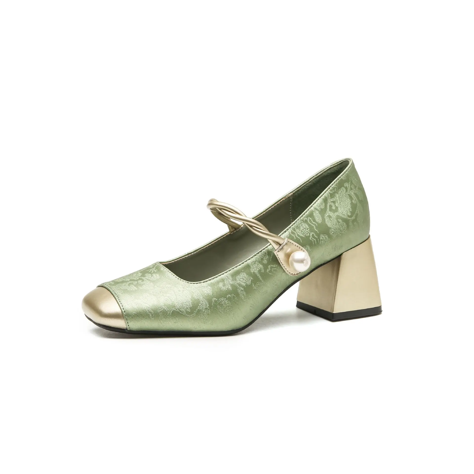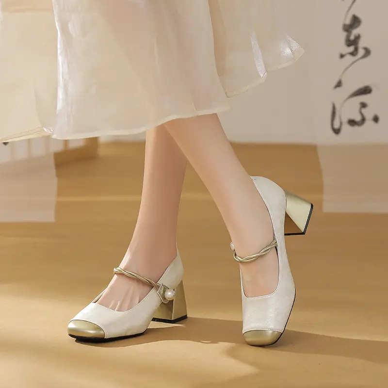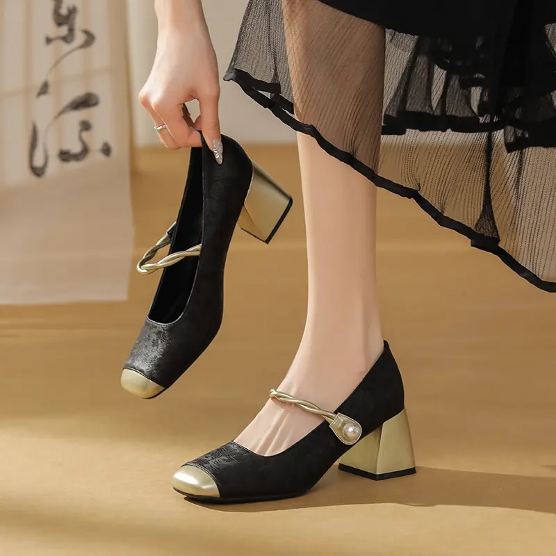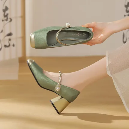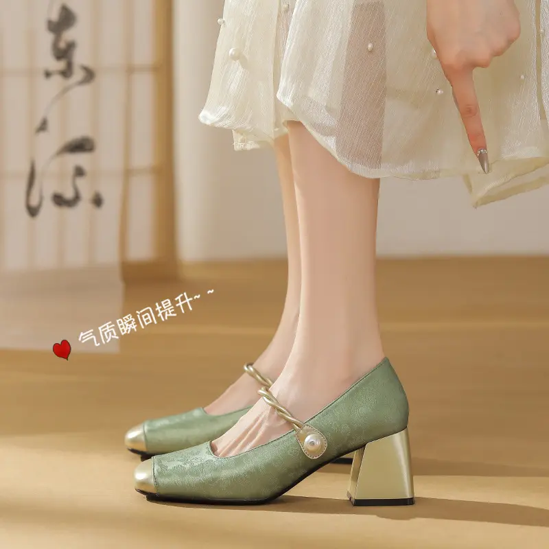 粗跟玛丽珍鞋女2024年春秋季新款配旗袍浅口中跟仙女风法式单鞋