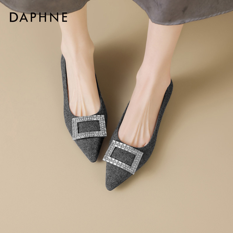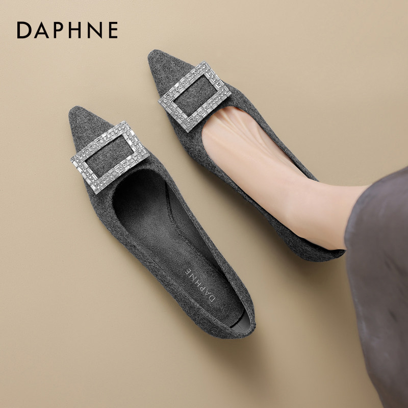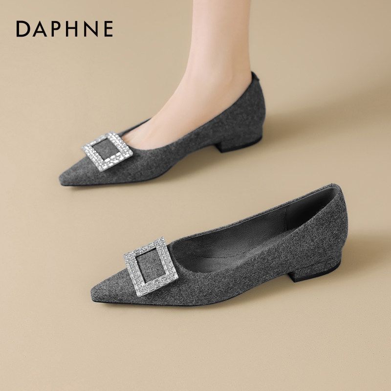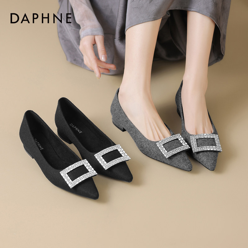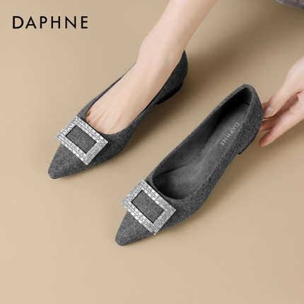 达芙妮平底单鞋女春季尖头女鞋2026新款浅口低跟秋冬鞋子粗跟瓢鞋
