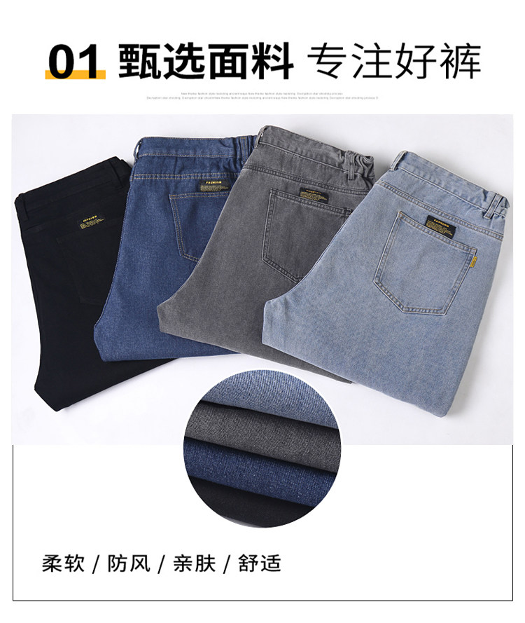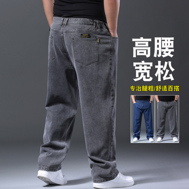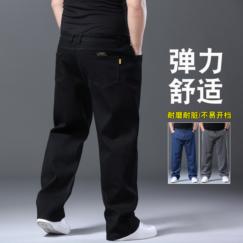 春秋季牛仔裤男士直筒宽松大码加肥加大高腰肥佬休闲厚款弹力长裤